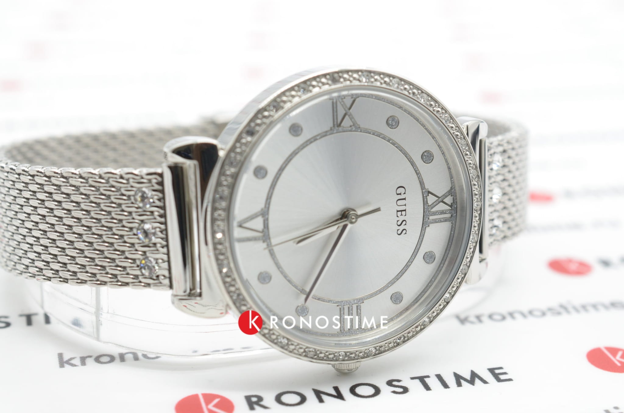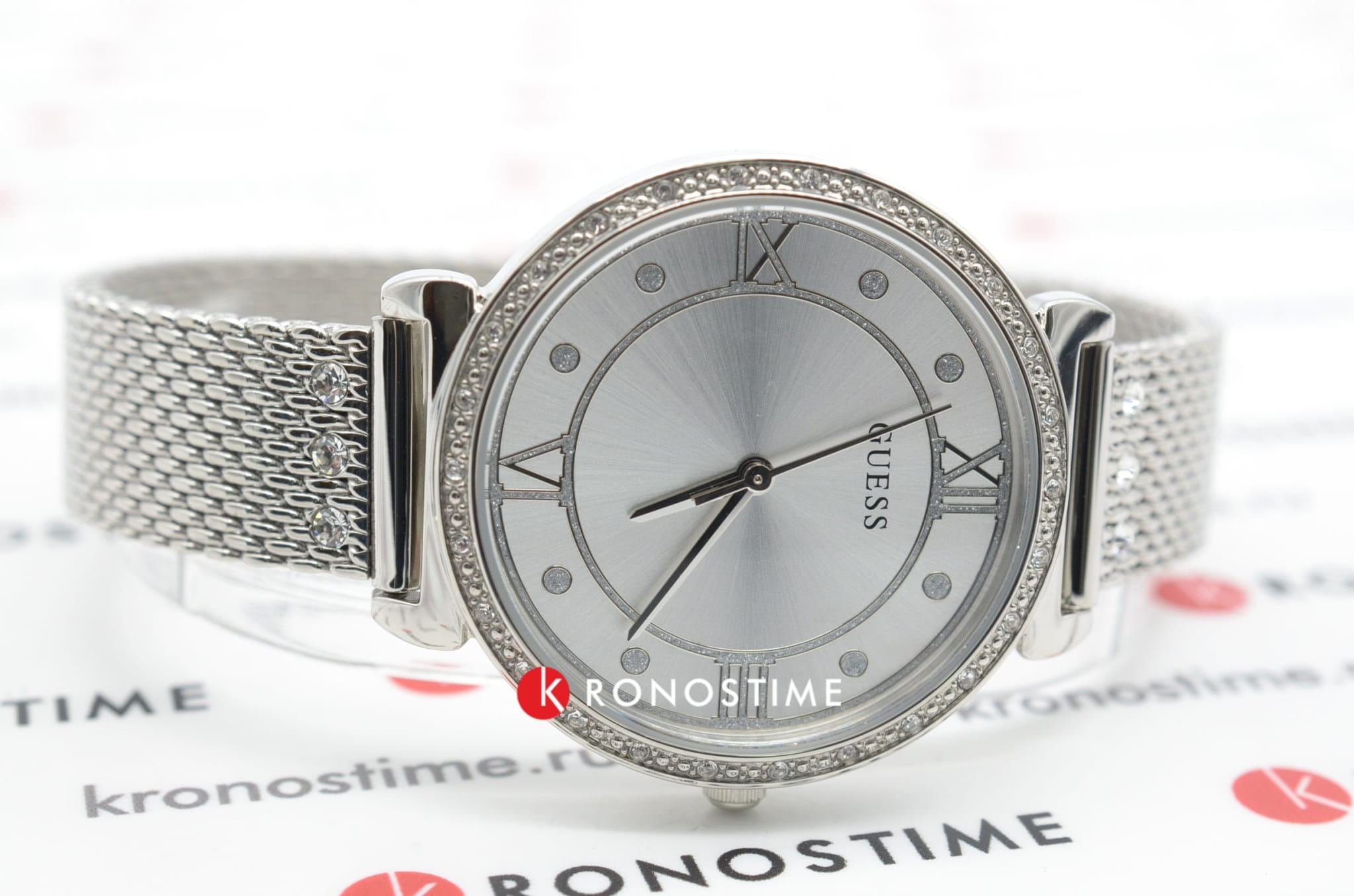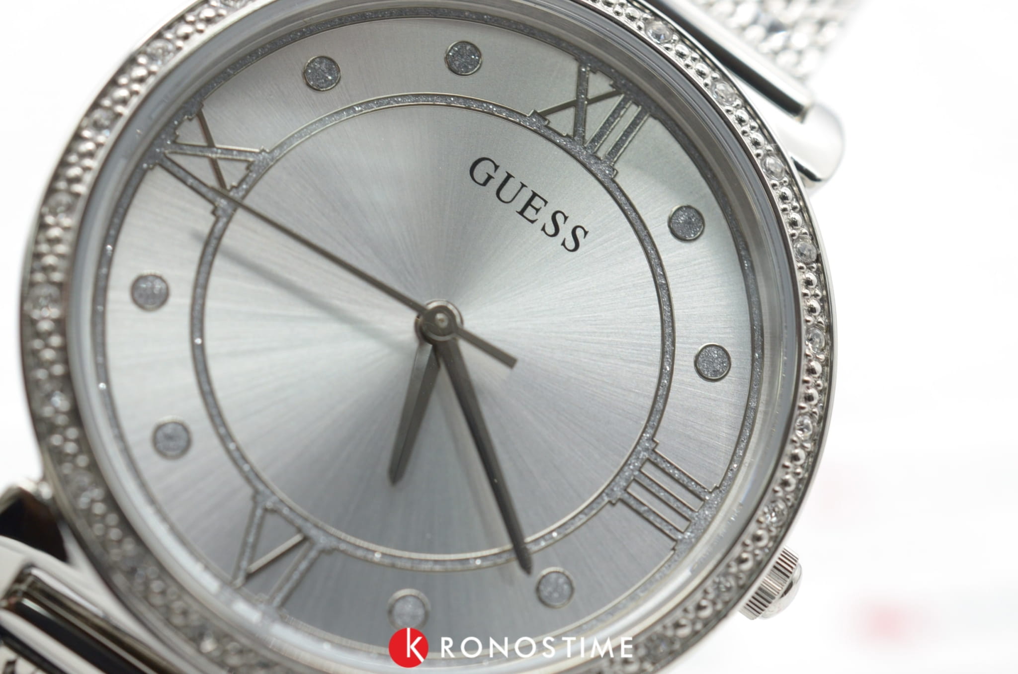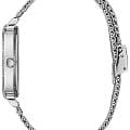 Обладательница аксессуара будет блистать благодаря этому яркому аксессуару. Временные отметки в виде римских цифр в сочетании с изящными кругами. Ослепительный блеск кристаллов добавляет аксессуару королевского шарма. Привлекательный браслет миланского плетения. Водонепроницаемость в 30 WR. Минеральное стекло.