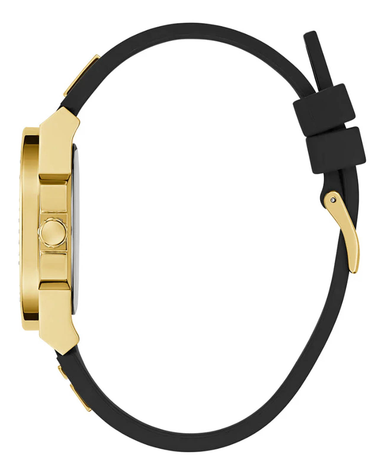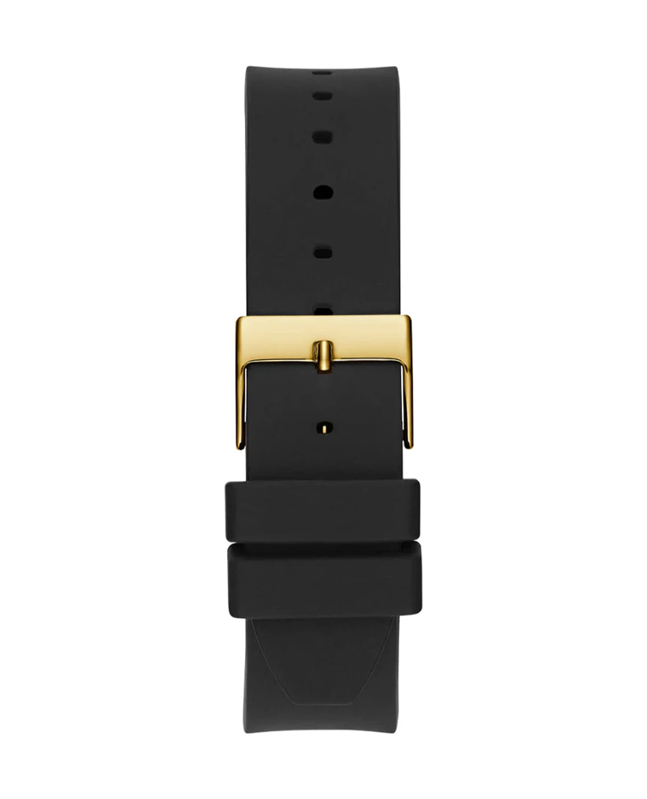 Женские наручные часы Guess Sport GW0617L5 с минеральным стекломМинеральное стеклоМинеральное стекло представляет собой искусственно выращенный минерал кварца. Такое стекло отличается особой устойчивостью к повреждениям и царапинам. Уступает по некоторым качествам сапфировому стеклу., кварцевый механизм с высокой точностью. Корпус часов изготовлен из нержавеющей стали с IP-покрытиемIP-покрытиеМетод ионного напыления. Демонстрирует повышенную устойчивость к истиранию, окислению и химическим веществам. Под воздействием высокого давления и температуры около 1500°C молекулы металла надёжно соединяются с частицами корпуса часов.. БезельБезельВнешний ободок, закрепляющий стекло. В спортивных часах так называется поворотное кольцо с делениями на циферблате, выполняет роль таймера – замеряет отрезки времени на шкале. Неподвижный безель – элемент декора. Однонаправленно вращающийся безель на дайверских часах позволяет фиксировать моменты погружения и выныривания на поверхность. украшен кристаллами. Стрелки с люминесцентным покрытиемЛюминесцентное покрытиеПозволяет считывать показания времени в темноте. Производители наносят на стрелки, часовые индексы, безель или поверхность циферблата светонакопительный состав, дающий холодное свечение.. Класс водозащиты: 50 метров, позволит защитить корпус от случайных брызг или капель дождя. Силиконовый ремешок на стандартной застежке.