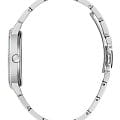 Женские наручные часы Guess Dress GW0657L1 с минеральным стекломМинеральное стеклоМинеральное стекло представляет собой искусственно выращенный минерал кварца. Такое стекло отличается особой устойчивостью к повреждениям и царапинам. Уступает по некоторым качествам сапфировому стеклу., кварцевый механизм с высокой точностью. Корпус часов изготовлен из нержавеющей стали. Стрелки с люминесцентным покрытиемЛюминесцентное покрытиеПозволяет считывать показания времени в темноте. Производители наносят на стрелки, часовые индексы, безель или поверхность циферблата светонакопительный состав, дающий холодное свечение.. Класс водозащиты: 30 метров, позволит защитить корпус от случайных брызг или капель дождя. Стальной браслет на раскладной застёжкеРаскладная застёжкаТакой тип застёжки используется только на браслетах из металла. Она никогда не раскрывается полностью, происходит разделение на 2 и более частей. Раскладывающая застёжка снизит вероятность потери часов к минимуму.. Неподвижный безельБезельВнешний ободок, закрепляющий стекло. В спортивных часах так называется поворотное кольцо с делениями на циферблате, выполняет роль таймера – замеряет отрезки времени на шкале. Неподвижный безель – элемент декора. Однонаправленно вращающийся безель на дайверских часах позволяет фиксировать моменты погружения и выныривания на поверхность. украшен кристаллами.