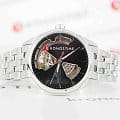 Женские механические швейцарские часы Hamilton Jazzmaster Open Heart Auto H32215130, автоматический механизм с высокой точностью. Сапфировое стеклоСапфировое стеклоПрочный и надёжный материал из кристалла сапфира синтетического происхождения, характеризующийся особой твёрдостью и устойчивостью к царапинам и повреждениям. устойчивое к появлению царапин, обладающее высокой прозрачностью. Класс водозащиты: 50 метров, позволит защитить корпус от случайных брызг или капель дождя. Корпус часов изготовлен из нержавеющей стали. Стальной браслет на застёжке-бабочке с кнопкамиЗастёжка "бабочка"Такой вид застёжки дополняется предохранителями, помогающими избежать случайного раскрытия браслета. Обладают изящным исполнением. . Стрелки с люминесцентным покрытиемЛюминесцентное покрытиеПозволяет считывать показания времени в темноте. Производители наносят на стрелки, часовые индексы, безель или поверхность циферблата светонакопительный состав, дающий холодное свечение..