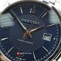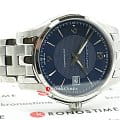 Очень красивые классические часы с индивидуальным дизайном. Привлекает глаз синий гильошированный циферблат с арабскими цифрами интересным шрифтом и метками, с зеркальной полировкой, которые переливаются блеском на солнце и без солнца). Стрелки и метки покрыты в середине суперлюминовой, вроде бы как напыления и не должно быть, а оно есть и работает, даже в таком утонченном виде! Окошко даты трапецевидной формы- тоже интересное решение.
