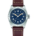 Мужские наручные часы Hamilton Khaki Field Expedition Auto H70225540 с автоматическим механизмом. Корпус часов изготовлен из нержавеющей стали. Практичный кожаный ремешок на стандартной застёжке. Сапфировое стеклоСапфировое стеклоПрочный и надёжный материал из кристалла сапфира синтетического происхождения, характеризующийся особой твёрдостью и устойчивостью к царапинам и повреждениям. с антибликовым покрытием. Стрелки и метки с люминесцентным покрытиемЛюминесцентное покрытиеПозволяет считывать показания времени в темноте. Производители наносят на стрелки, часовые индексы, безель или поверхность циферблата светонакопительный состав, дающий холодное свечение.. Уровень влагозащиты: 100 метров, позволит плавать, нырять и заниматься другими водными видами спорта.