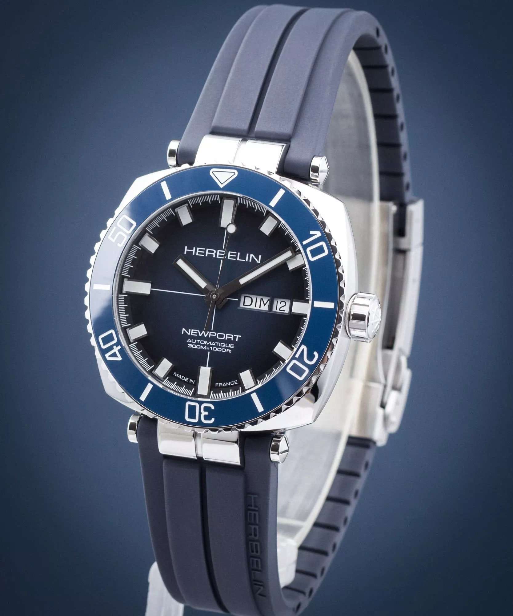 Мужские механические часы с автоподзаводом Herbelin Newport 1774BL15CB – отражающий идеальное сочетание современного дизайна, надёжности и функциональности. Элегантный облик станет превосходным завершением образа, наделив его индивидуальным характером. Корпус из нержавеющей стали серебристого цвета, диаметром 42 мм, идеально сбалансирован и элегантен. Сапфировое стеклоСапфировое стеклоПрочный и надёжный материал из кристалла сапфира синтетического происхождения, характеризующийся особой твёрдостью и устойчивостью к царапинам и повреждениям. защищает циферблат от царапин и устойчивое к механическим повреждениям. Керамический безельБезельВнешний ободок, закрепляющий стекло. В спортивных часах так называется поворотное кольцо с делениями на циферблате, выполняет роль таймера – замеряет отрезки времени на шкале. Неподвижный безель – элемент декора. Однонаправленно вращающийся безель на дайверских часах позволяет фиксировать моменты погружения и выныривания на поверхность. синего цвета. Окошко даты находится в положении 3 часа. Стрелки и метки с люминесцентным покрытиемЛюминесцентное покрытиеПозволяет считывать показания времени в темноте. Производители наносят на стрелки, часовые индексы, безель или поверхность циферблата светонакопительный состав, дающий холодное свечение.. Каучуковый ремешок на раскладной застёжке с фиксаторомРаскладная застёжкаТакой тип застёжки используется только на браслетах из металла. Она никогда не раскрывается полностью, происходит разделение на 2 и более частей. Раскладывающая застёжка снизит вероятность потери часов к минимуму. обеспечивает комфортное ношение. Водозащита 300 метров позволит плавать, нырять и заниматься другими водными видами спорта. Эта модель – отличный выбор для тех, кто ищет сочетание стиля, качества и функциональности. Часы станут не только полезным аксессуаром, но и выразительным элементом вашего имиджа.