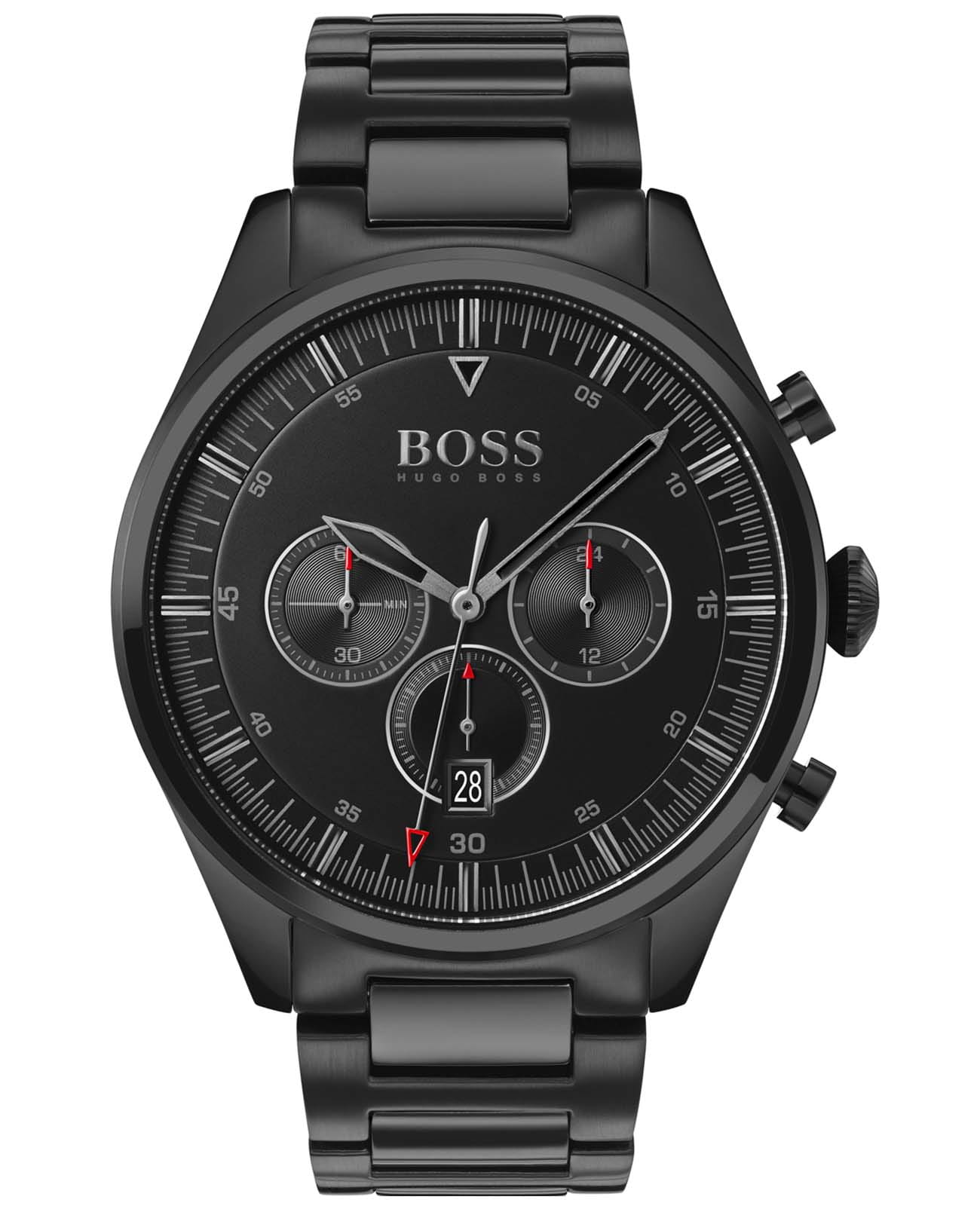 Мужские кварцевые часы Hugo Boss Commissioner HB1513714 представляют собой стильный хронографХронографФункция позволяет измерять отрезки времени с особой точностью: часы, минуты, секунды. Верным признаком хронографа является наличие на циферблате 3 дополнительных окошек-счётчиков. с круглым корпусом диаметром 44 мм из нержавеющей стали с IP-покрытиемIP-покрытиеМетод ионного напыления. Демонстрирует повышенную устойчивость к истиранию, окислению и химическим веществам. Под воздействием высокого давления и температуры около 1500°C молекулы металла надёжно соединяются с частицами корпуса часов. черного цвета. Модель оснащена высокоточным кварцевым механизмом с функцией хронографаХронографФункция позволяет измерять отрезки времени с особой точностью: часы, минуты, секунды. Верным признаком хронографа является наличие на циферблате 3 дополнительных окошек-счётчиков., включая 60-минутный счетчик и 24-часовой индикатор, а также тахиметрической шкалойТахиметрРазмеченная шкала, располагается на ободке или безеле часов. Тахиметр позволяет рассчитать скорость на определённом участке пути, расстояние измеряется в километрах или милях. для расчетов скорости. Черный циферблат с серебристыми стрелками и индексами обеспечивает оптимальную читаемость, защищен устойчивым к царапинам минеральным стекломМинеральное стеклоМинеральное стекло представляет собой искусственно выращенный минерал кварца. Такое стекло отличается особой устойчивостью к повреждениям и царапинам. Уступает по некоторым качествам сапфировому стеклу.. Водонепроницаемость 5 ATM (50 метров) защищает от брызг и дождя. Стальной браслет с IP-покрытиемIP-покрытиеМетод ионного напыления. Демонстрирует повышенную устойчивость к истиранию, окислению и химическим веществам. Под воздействием высокого давления и температуры около 1500°C молекулы металла надёжно соединяются с частицами корпуса часов. и раскладной застежкойРаскладная застёжкаТакой тип застёжки используется только на браслетах из металла. Она никогда не раскрывается полностью, происходит разделение на 2 и более частей. Раскладывающая застёжка снизит вероятность потери часов к минимуму. с фиксатором обеспечивает надежную посадку на запястье.