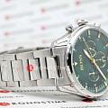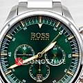 Мужские часы Hugo Boss Pioneer HB1513868 представлены в круглом 44-мм корпусе из нержавеющей стали. Оснащены кварцевым механизмом с функциями хронографаХронографФункция позволяет измерять отрезки времени с особой точностью: часы, минуты, секунды. Верным признаком хронографа является наличие на циферблате 3 дополнительных окошек-счётчиков. и секундомеромСекундомерСекундоме́р — прибор, способный измерять интервалы времени с точностью до долей секунды., а также индикацией даты. Зеленый циферблат с метками в виде штрихов защищен устойчивым к царапинам минеральным стекломМинеральное стеклоМинеральное стекло представляет собой искусственно выращенный минерал кварца. Такое стекло отличается особой устойчивостью к повреждениям и царапинам. Уступает по некоторым качествам сапфировому стеклу.. Браслет из стали дополнен раскладной застёжкойРаскладная застёжкаТакой тип застёжки используется только на браслетах из металла. Она никогда не раскрывается полностью, происходит разделение на 2 и более частей. Раскладывающая застёжка снизит вероятность потери часов к минимуму.. Водонепроницаемость 50 метров (5 ATM) обеспечивает защиту от брызг и дождя.