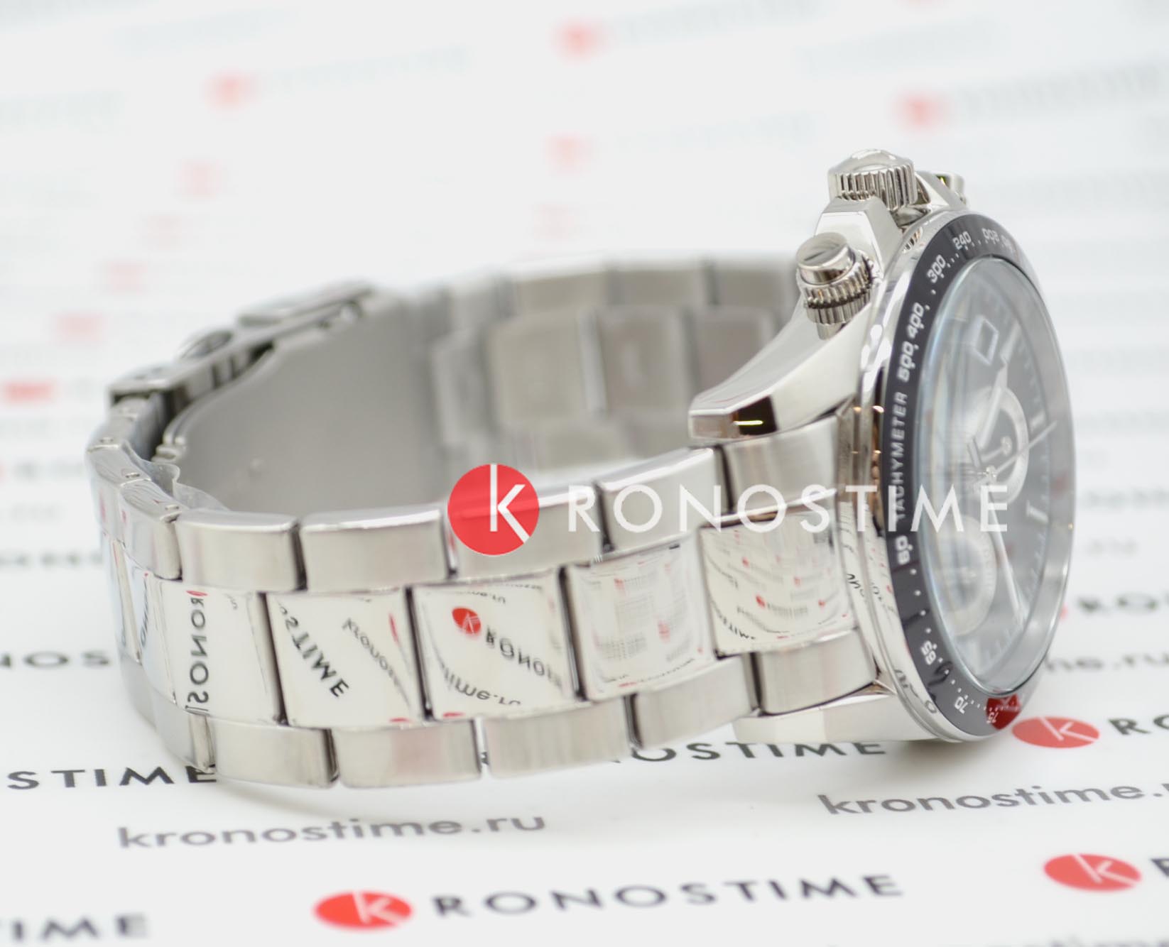 Кварцевый механизм с высокой точностью. БезельБезельВнешний ободок, закрепляющий стекло. В спортивных часах так называется поворотное кольцо с делениями на циферблате, выполняет роль таймера – замеряет отрезки времени на шкале. Неподвижный безель – элемент декора. Однонаправленно вращающийся безель на дайверских часах позволяет фиксировать моменты погружения и выныривания на поверхность. неповоротный. Минеральное стеклоМинеральное стеклоМинеральное стекло представляет собой искусственно выращенный минерал кварца. Такое стекло отличается особой устойчивостью к повреждениям и царапинам. Уступает по некоторым качествам сапфировому стеклу. устойчивое к появлению царапин, обладающее высокой прозрачностью. Стрелки и метки с люминесцентным покрытиемЛюминесцентное покрытиеПозволяет считывать показания времени в темноте. Производители наносят на стрелки, часовые индексы, безель или поверхность циферблата светонакопительный состав, дающий холодное свечение.. Класс водозащиты: 200 метров, позволит плавать, нырять и заниматься другими водными видами спорта. Корпус часов изготовлен из нержавеющей стали. Металлический браслет с раскладной застёжкойРаскладная застёжкаТакой тип застёжки используется только на браслетах из металла. Она никогда не раскрывается полностью, происходит разделение на 2 и более частей. Раскладывающая застёжка снизит вероятность потери часов к минимуму..