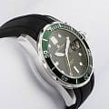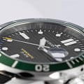 Мужские часы Jacques Lemans Hybromatic 1-2170E с минеральным стекломМинеральное стеклоМинеральное стекло представляет собой искусственно выращенный минерал кварца. Такое стекло отличается особой устойчивостью к повреждениям и царапинам. Уступает по некоторым качествам сапфировому стеклу., гибрид кварца и механики с автоподзаводом. Корпус выполенен из нержавеющей стали. Вращающийся безельБезельВнешний ободок, закрепляющий стекло. В спортивных часах так называется поворотное кольцо с делениями на циферблате, выполняет роль таймера – замеряет отрезки времени на шкале. Неподвижный безель – элемент декора. Однонаправленно вращающийся безель на дайверских часах позволяет фиксировать моменты погружения и выныривания на поверхность. из нержавеющей стали с PVDPVDУльтратонкое покрытие наносится в технике вакуумного напыления, сочетает в себе нитрид титана особой прочности со слоем золота или оксида хрома. Несёт в себе декоративную или защитную функцию. покрытием. Стрелки и метки с люминесцентным покрытиемЛюминесцентное покрытиеПозволяет считывать показания времени в темноте. Производители наносят на стрелки, часовые индексы, безель или поверхность циферблата светонакопительный состав, дающий холодное свечение.. Окошко даты находится в положении 3 часов. Класс водозащиты: 200 метров, позволит плавать, нырять и заниматься другими водными видами спорта. Силиконовый ремешок на стандартной застежке.