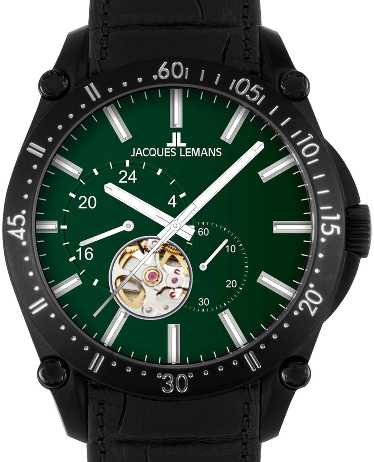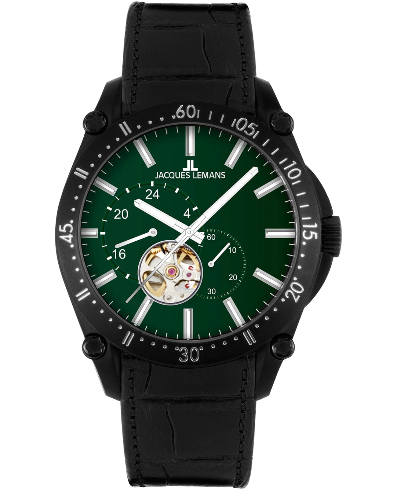 Мужские механические часы-скелетоны Jacques Lemans 1-2201C – лаконичная красота и изысканная элегантность. Оригинальная модель с классическим оформлением станет превосходным завершением образа, наделив его индивидуальным характером. Корпус выполнен из нержавеющей стали с PVD-покрытиемPVDУльтратонкое покрытие наносится в технике вакуумного напыления, сочетает в себе нитрид титана особой прочности со слоем золота или оксида хрома. Несёт в себе декоративную или защитную функцию. черного цвета, диаметром 44 мм, что обеспечивает долговечность и утончённый внешний вид. Минеральное стеклоМинеральное стеклоМинеральное стекло представляет собой искусственно выращенный минерал кварца. Такое стекло отличается особой устойчивостью к повреждениям и царапинам. Уступает по некоторым качествам сапфировому стеклу. с сапфировым напылением защищает циферблат от царапин. Кожаный ремешок на стандартной застёжке обеспечивает комфортное ношение. Водозащита 100 метров позволит плавать, нырять и заниматься другими водными видами спорта. Стрелки и метки с люминесцентным покрытиемЛюминесцентное покрытиеПозволяет считывать показания времени в темноте. Производители наносят на стрелки, часовые индексы, безель или поверхность циферблата светонакопительный состав, дающий холодное свечение. позволяющие легко определять время даже в темноте. БезельБезельВнешний ободок, закрепляющий стекло. В спортивных часах так называется поворотное кольцо с делениями на циферблате, выполняет роль таймера – замеряет отрезки времени на шкале. Неподвижный безель – элемент декора. Однонаправленно вращающийся безель на дайверских часах позволяет фиксировать моменты погружения и выныривания на поверхность. дополнен минутной шкалой. Запас хода 42 ч. На отдельные циферблаты вынесены индикатор 24-х часов и малая секундная стрелка. Сквозь прозрачное окошко можно наблюдать за работой механизма часов. Рифленая заводная головка с защитой. Это аксессуар для мужчины, который ценит классический стиль и функциональность.