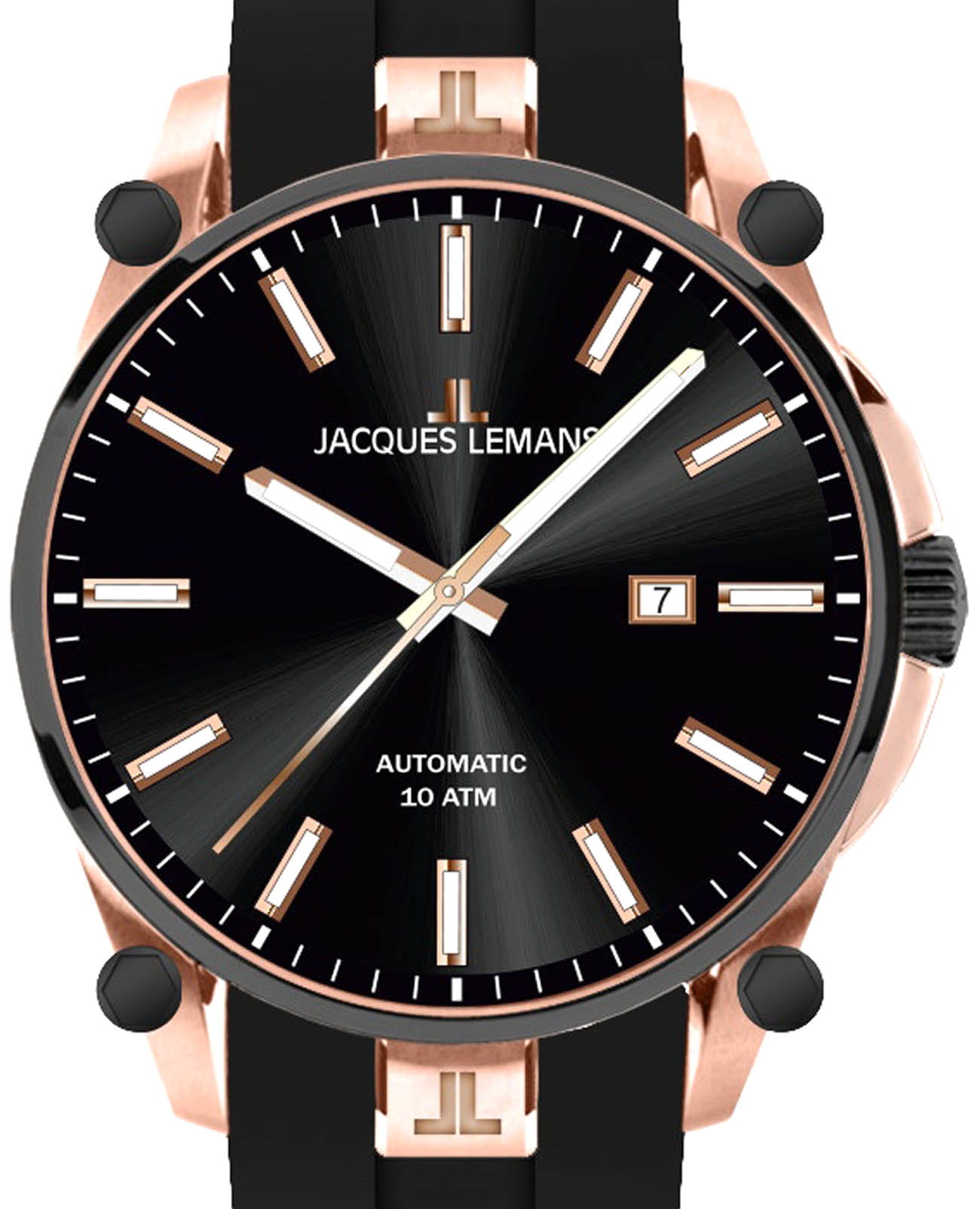 Мужские механические часы с автоподзаводом Jacques Lemans 1-2203C – лаконичная красота и изысканная элегантность. Оригинальная модель с классическим оформлением станет превосходным завершением образа, наделив его индивидуальным характером. Корпус выполнен из нержавеющей стали с PVD-покрытиемPVDУльтратонкое покрытие наносится в технике вакуумного напыления, сочетает в себе нитрид титана особой прочности со слоем золота или оксида хрома. Несёт в себе декоративную или защитную функцию. цвета розового золота, диаметром 44 мм, что обеспечивает долговечность и утончённый внешний вид. Минеральное стеклоМинеральное стеклоМинеральное стекло представляет собой искусственно выращенный минерал кварца. Такое стекло отличается особой устойчивостью к повреждениям и царапинам. Уступает по некоторым качествам сапфировому стеклу. с сапфировым напылением защищает циферблат от царапин. Силиконовый ремешок на стандартной застёжке обеспечивает комфортное ношение. Неподвижный безельБезельВнешний ободок, закрепляющий стекло. В спортивных часах так называется поворотное кольцо с делениями на циферблате, выполняет роль таймера – замеряет отрезки времени на шкале. Неподвижный безель – элемент декора. Однонаправленно вращающийся безель на дайверских часах позволяет фиксировать моменты погружения и выныривания на поверхность. с PVD-покрытиемPVDУльтратонкое покрытие наносится в технике вакуумного напыления, сочетает в себе нитрид титана особой прочности со слоем золота или оксида хрома. Несёт в себе декоративную или защитную функцию. черного цвета. Водозащита 100 метров позволит плавать, нырять и заниматься другими водными видами спорта. Стрелки и метки с люминесцентным покрытиемЛюминесцентное покрытиеПозволяет считывать показания времени в темноте. Производители наносят на стрелки, часовые индексы, безель или поверхность циферблата светонакопительный состав, дающий холодное свечение. позволяющие легко определять время даже в темноте. Окошко даты находится в положении 3 часа. Рифленая заводная головка с защитой. Это аксессуар для мужчины, который ценит классический стиль и функциональность.