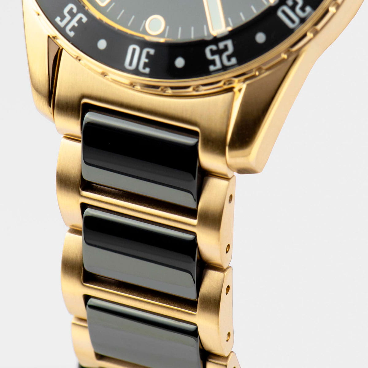 Часы с явными спортивными акцентами могут выглядеть элегантно. Крупный корпус диаметром 42 мм сделан из нержавеющей стали с PVD-покрытиемPVDУльтратонкое покрытие наносится в технике вакуумного напыления, сочетает в себе нитрид титана особой прочности со слоем золота или оксида хрома. Несёт в себе декоративную или защитную функцию., на широкий безельБезельВнешний ободок, закрепляющий стекло. В спортивных часах так называется поворотное кольцо с делениями на циферблате, выполняет роль таймера – замеряет отрезки времени на шкале. Неподвижный безель – элемент декора. Однонаправленно вращающийся безель на дайверских часах позволяет фиксировать моменты погружения и выныривания на поверхность. вынесена дополнительная индикация. Точный кварцевый механизм отвечает за движение хорошо читаемых стрелок, покрытых люминесцентным составомЛюминесцентное покрытиеПозволяет считывать показания времени в темноте. Производители наносят на стрелки, часовые индексы, безель или поверхность циферблата светонакопительный состав, дающий холодное свечение.. Таким же образом выделены и индексы, поэтому время по этим часам легко определить даже в темноте. В положении «3 часа» находится окошко даты. Еще одна спортивная составляющая — повышенная водостойкость, равная 10 атмосфер: в часах можно плавать. Вместе с этим, модель идеально впишется и в классический образ, и в повседневный. Особая деталь — звенья браслета из высокотехнологичной керамикиВысокотехнологичная керамикаИнновационный запатентованный Rado материал с гладкой или матовой поверхностью. Керамика за счёт кристаллической структуры обладает повышенной устойчивостью от возникновения царапин. Материал способен принимать температуру тела человека, обеспечивая невероятный комфорт при ношении. черного цвета, в тон циферблату. Этот материал удобно носить даже в мороз: он быстро нагревается до комфортной температуры тела. К тому же, керамика стойко сопротивляется появлению микроцарапин. На браслет установлена раскладная застёжкаРаскладная застёжкаТакой тип застёжки используется только на браслетах из металла. Она никогда не раскрывается полностью, происходит разделение на 2 и более частей. Раскладывающая застёжка снизит вероятность потери часов к минимуму..