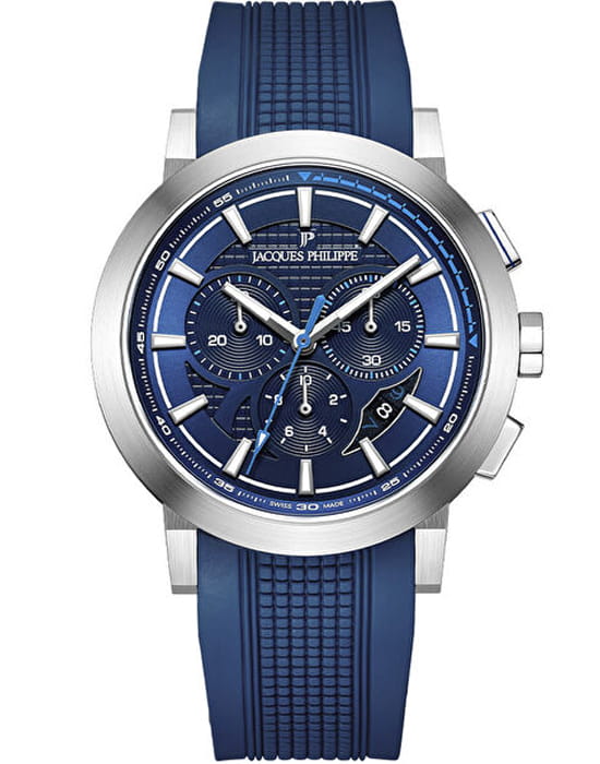 Часы Jacques Philippe JPQGC371432 из коллекции Corus — элегантные мужские часы, сочетающие в себе швейцарское качество и современный дизайн. Корпус диаметром 43 мм выполнен из нержавеющей стали, а синий циферблат защищён сапфировым стекломСапфировое стеклоПрочный и надёжный материал из кристалла сапфира синтетического происхождения, характеризующийся особой твёрдостью и устойчивостью к царапинам и повреждениям..