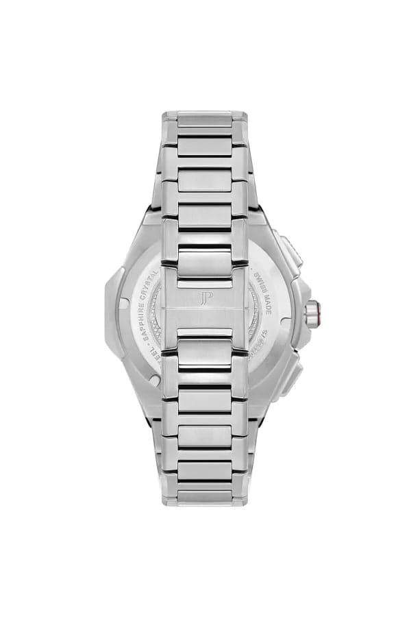 Швейцарские мужские часы-хронографХронографФункция позволяет измерять отрезки времени с особой точностью: часы, минуты, секунды. Верным признаком хронографа является наличие на циферблате 3 дополнительных окошек-счётчиков. с секундомеромСекундомерСекундоме́р — прибор, способный измерять интервалы времени с точностью до долей секунды. Jacques Philippe Esquire JPQGC481316, кварцевый механизм с высокой точностью. Сапфировое стеклоСапфировое стеклоПрочный и надёжный материал из кристалла сапфира синтетического происхождения, характеризующийся особой твёрдостью и устойчивостью к царапинам и повреждениям. устойчивое к появлению царапин, обладающее высокой прозрачностью. Корпус часов изготовлен из нержавеющей стали 316L. На циферблате три дополнительных индикатора. Стрелки и метки с люминесцентным покрытиемЛюминесцентное покрытиеПозволяет считывать показания времени в темноте. Производители наносят на стрелки, часовые индексы, безель или поверхность циферблата светонакопительный состав, дающий холодное свечение.. Шкала тахиметраТахиметрРазмеченная шкала, располагается на ободке или безеле часов. Тахиметр позволяет рассчитать скорость на определённом участке пути, расстояние измеряется в километрах или милях. на циферблате. Класс водозащиты: 50 метров, позволит защитить корпус от случайных брызг или капель дождя. Стальной браслет на застёжке «бабочка»Застёжка "бабочка"Такой вид застёжки дополняется предохранителями, помогающими избежать случайного раскрытия браслета. Обладают изящным исполнением. .