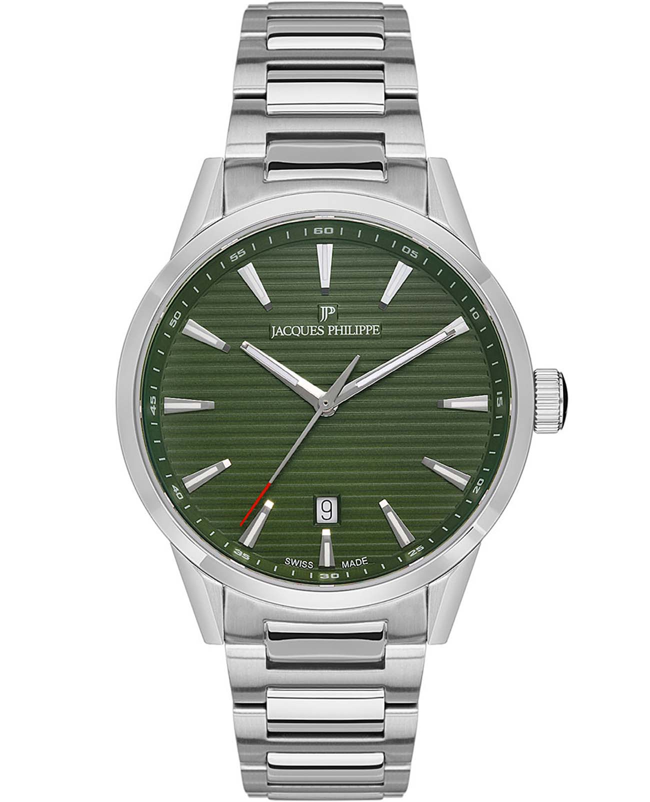 Швейцарские мужские часы Jacques Philippe Aspect JPQGS0913X6, кварцевый механизм с высокой точностью. Сапфировое стеклоСапфировое стеклоПрочный и надёжный материал из кристалла сапфира синтетического происхождения, характеризующийся особой твёрдостью и устойчивостью к царапинам и повреждениям. устойчивое к появлению царапин, обладающее высокой прозрачностью. Корпус часов изготовлен из нержавеющей стали. Класс водозащиты: 50 метров, позволит защитить корпус от случайных брызг или капель дождя. Стальной браслет на раскладной застёжкеРаскладная застёжкаТакой тип застёжки используется только на браслетах из металла. Она никогда не раскрывается полностью, происходит разделение на 2 и более частей. Раскладывающая застёжка снизит вероятность потери часов к минимуму.. Окошко даты находится в положении 6 часов. Стрелки и метки с люминесцентным покрытиемЛюминесцентное покрытиеПозволяет считывать показания времени в темноте. Производители наносят на стрелки, часовые индексы, безель или поверхность циферблата светонакопительный состав, дающий холодное свечение..
