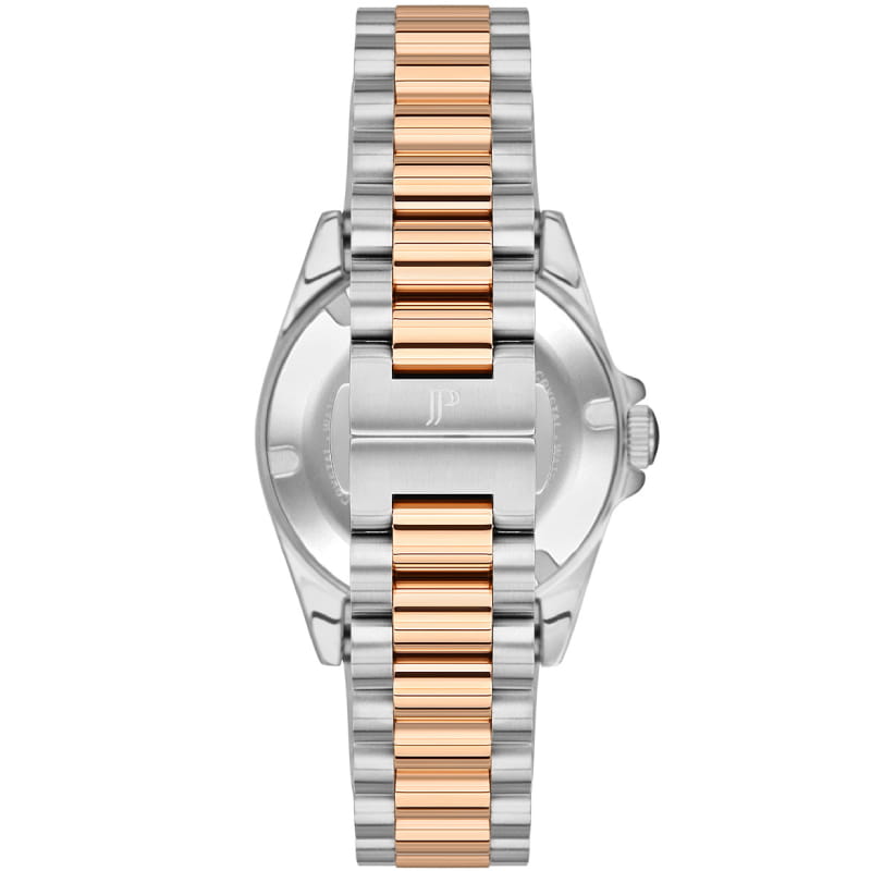 Часы Jacques Philippe JPQLS347388 из коллекции Infinitum — элегантные женские часы, сочетающие в себе швейцарское качество и современный дизайн. Корпус диаметром 34 мм выполнен из нержавеющей стали с PVD-покрытиемPVDУльтратонкое покрытие наносится в технике вакуумного напыления, сочетает в себе нитрид титана особой прочности со слоем золота или оксида хрома. Несёт в себе декоративную или защитную функцию., а зеленый циферблат защищён сапфировым стекломСапфировое стеклоПрочный и надёжный материал из кристалла сапфира синтетического происхождения, характеризующийся особой твёрдостью и устойчивостью к царапинам и повреждениям.. БезельБезельВнешний ободок, закрепляющий стекло. В спортивных часах так называется поворотное кольцо с делениями на циферблате, выполняет роль таймера – замеряет отрезки времени на шкале. Неподвижный безель – элемент декора. Однонаправленно вращающийся безель на дайверских часах позволяет фиксировать моменты погружения и выныривания на поверхность. с PVD-покрытиемPVDУльтратонкое покрытие наносится в технике вакуумного напыления, сочетает в себе нитрид титана особой прочности со слоем золота или оксида хрома. Несёт в себе декоративную или защитную функцию.. Циферблат инкрустирован кристаллами. Внутри установлен швейцарский кварцевый механизм, обеспечивающий высокую точность хода. Водозащита 100 метров (10 ATM) позволяет использовать часы для плавания и других водных видов спорта. Браслет из нержавеющей стали с застёжкой бабочкаЗастёжка "бабочка"Такой вид застёжки дополняется предохранителями, помогающими избежать случайного раскрытия браслета. Обладают изящным исполнением. обеспечивает комфортное ношение и надёжную фиксацию на запястье. Эти часы идеально подойдут для тех, кто ценит сочетание классического стиля и современных технологий.
