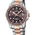 Женские швейцарские часы Jaguar Couple Diver J871/2. Кварцевый швейцарский калибр Ronda 705. Сапфировое стеклоСапфировое стеклоПрочный и надёжный материал из кристалла сапфира синтетического происхождения, характеризующийся особой твёрдостью и устойчивостью к царапинам и повреждениям. устойчивое к мелким механическим повреждениям. Корпус часов изготовлен из нержавеющей стали. Стрелки и метки с люминесцентным покрытиемЛюминесцентное покрытиеПозволяет считывать показания времени в темноте. Производители наносят на стрелки, часовые индексы, безель или поверхность циферблата светонакопительный состав, дающий холодное свечение.. Окошко даты находится в положении 3 часа. Класс водозащиты: 200 метров, позволит плавать, нырять и заниматься другими водными видами спорта. Стальной браслет с частичным PVD-покрытиемPVDУльтратонкое покрытие наносится в технике вакуумного напыления, сочетает в себе нитрид титана особой прочности со слоем золота или оксида хрома. Несёт в себе декоративную или защитную функцию. на раскладной застёжкеРаскладная застёжкаТакой тип застёжки используется только на браслетах из металла. Она никогда не раскрывается полностью, происходит разделение на 2 и более частей. Раскладывающая застёжка снизит вероятность потери часов к минимуму.. Циферблат украшен 11 кристаллами в роли часовых индексов. БезельБезельВнешний ободок, закрепляющий стекло. В спортивных часах так называется поворотное кольцо с делениями на циферблате, выполняет роль таймера – замеряет отрезки времени на шкале. Неподвижный безель – элемент декора. Однонаправленно вращающийся безель на дайверских часах позволяет фиксировать моменты погружения и выныривания на поверхность. с PVD-покрытиемPVDУльтратонкое покрытие наносится в технике вакуумного напыления, сочетает в себе нитрид титана особой прочности со слоем золота или оксида хрома. Несёт в себе декоративную или защитную функцию..