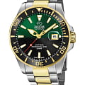 Мужские швейцарские часы Jaguar Automatic Diver J887/4. Автоматический швейцарский калибр ETA 2824-2. Сапфировое стеклоСапфировое стеклоПрочный и надёжный материал из кристалла сапфира синтетического происхождения, характеризующийся особой твёрдостью и устойчивостью к царапинам и повреждениям. устойчивое к мелким механическим повреждениям. Корпус часов изготовлен из нержавеющей стали. Стрелки и метки с люминесцентным покрытиемЛюминесцентное покрытиеПозволяет считывать показания времени в темноте. Производители наносят на стрелки, часовые индексы, безель или поверхность циферблата светонакопительный состав, дающий холодное свечение.. Окошко даты находится в положении 3 часа. Класс водозащиты: 200 метров, позволит плавать, нырять и заниматься другими водными видами спорта. Стальной браслет с частичным PVD-покрытиемPVDУльтратонкое покрытие наносится в технике вакуумного напыления, сочетает в себе нитрид титана особой прочности со слоем золота или оксида хрома. Несёт в себе декоративную или защитную функцию. на раскладной застёжкеРаскладная застёжкаТакой тип застёжки используется только на браслетах из металла. Она никогда не раскрывается полностью, происходит разделение на 2 и более частей. Раскладывающая застёжка снизит вероятность потери часов к минимуму.. БезельБезельВнешний ободок, закрепляющий стекло. В спортивных часах так называется поворотное кольцо с делениями на циферблате, выполняет роль таймера – замеряет отрезки времени на шкале. Неподвижный безель – элемент декора. Однонаправленно вращающийся безель на дайверских часах позволяет фиксировать моменты погружения и выныривания на поверхность. с PVD-покрытиемPVDУльтратонкое покрытие наносится в технике вакуумного напыления, сочетает в себе нитрид титана особой прочности со слоем золота или оксида хрома. Несёт в себе декоративную или защитную функцию..
