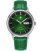 Мужские наручные часы Космос Юпитер K 043.17.38 — это сочетание традиций часового искусства 60-70-х годов и футуристического дизайна, вдохновленного космическими исследованиями. Они не только служат напоминанием о прошлом, но и побуждают задуматься о будущем, позволяя наслаждаться качеством и смыслом, вложенными в каждую деталь. Полированный корпус часов выполнен в виде силуэта летающей тарелки благодаря выпуклым формам стекла и нижней части корпуса. Стальные ушки, которые напоминают опоры летающей тарелки, завершает общий образ. На задней крышке часов выгравирован фантазийный сюжет – космическая станция будущего. Внутри модели установлен японский механизм с автоподзаводом, работающий на 24 рубинах, что обеспечивает его точность. Зеленый циферблат, выполненный в ретро-стиле, имеет изогнутые края, что требует сложной технологии производства. Циферблаты такой формы создавали в часах прошлых лет. Кончик секундной стрелки выгнут по форме циферблата. На выпуклом градиентном циферблате выполнена шлифовка в стиле солнечных лучей и размещены изготовленные вручную индексы, которые крепятся на двух штифтах. В модели представлены дополнительные функции даты и дня недели. На часовую, минутную стрелки, и круг по краю циферблата, напоминающий ореол по краю Земли, нанесено люминесцентное покрытиеЛюминесцентное покрытиеПозволяет считывать показания времени в темноте. Производители наносят на стрелки, часовые индексы, безель или поверхность циферблата светонакопительный состав, дающий холодное свечение., которое светится в темноте, создавая необычное изображение. Минеральное стеклоМинеральное стеклоМинеральное стекло представляет собой искусственно выращенный минерал кварца. Такое стекло отличается особой устойчивостью к повреждениям и царапинам. Уступает по некоторым качествам сапфировому стеклу. часов тоже тщательно проработано: оно выпуклое как снаружи, так и изнутри, что предотвращает искажение изображений на циферблате. Ремешок со стандартной застежкой сделан из натуральной кожи зеленого цвета.