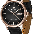 Мужские наручные часы Космос Телескоп K 304.41.31 — это уникальная лимитированная серия под названием Телескоп, посвящена аппарату приоткрывающего взгляду бескрайние дали космического пространства. Апертура открытого баланса модели по форме напоминает круглую линзу телескопа. Сквозь это окошко, расположенное на черном циферблате, также можно увидеть много интересного: ту самую систему «баланс-спираль» автоматического механизма, которая отвечает за точность хода. Корпус часов выполнен из нержавеющей стали с PVDPVDУльтратонкое покрытие наносится в технике вакуумного напыления, сочетает в себе нитрид титана особой прочности со слоем золота или оксида хрома. Несёт в себе декоративную или защитную функцию. покрытием, классической круглой формы и достаточно тонкий для механических моделей. Это стало возможным благодаря использованию механизма Miyota, калибр 9029, с высотой всего 3.9 мм. Циферблат декорирован вертикальной текстурой в ретро-стиле, по которой движутся крупные часовая и минутная стрелки, имеющие люминесцентное покрытиеЛюминесцентное покрытиеПозволяет считывать показания времени в темноте. Производители наносят на стрелки, часовые индексы, безель или поверхность циферблата светонакопительный состав, дающий холодное свечение., позволяющее определять время даже в темноте. Циферблат защищен прочным сапфировым стеклом с антибликовым покрытиемСапфировое стеклоПрочный и надёжный материал из кристалла сапфира синтетического происхождения, характеризующийся особой твёрдостью и устойчивостью к царапинам и повреждениям., обеспечивающим отличную читаемость показаний в любых условиях. Прозрачная задняя крышка, закрепленная на четырех винтах, демонстрирует механизм и содержит выгравированный индивидуальный номер экземпляра хх/50, отражающий лимитированный тираж всего в 50 штук. Ремешок часов сделан из натуральной кожи черного цвета и оснащен удобной застёжкой «бабочка» с кнопкамиЗастёжка "бабочка"Такой вид застёжки дополняется предохранителями, помогающими избежать случайного раскрытия браслета. Обладают изящным исполнением. , которая сводит к минимуму вероятность потери. Модель Телескоп сочетает классический дизайн и универсальность, прекрасно подходя как к деловому костюму, так и к более повседневным образам.