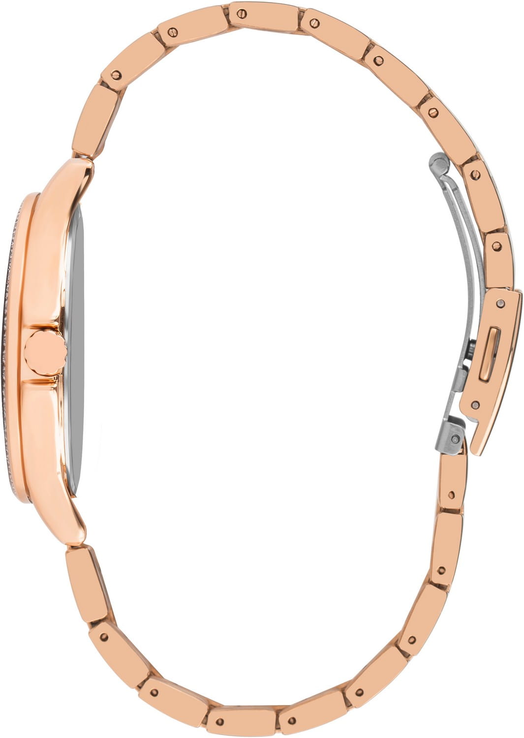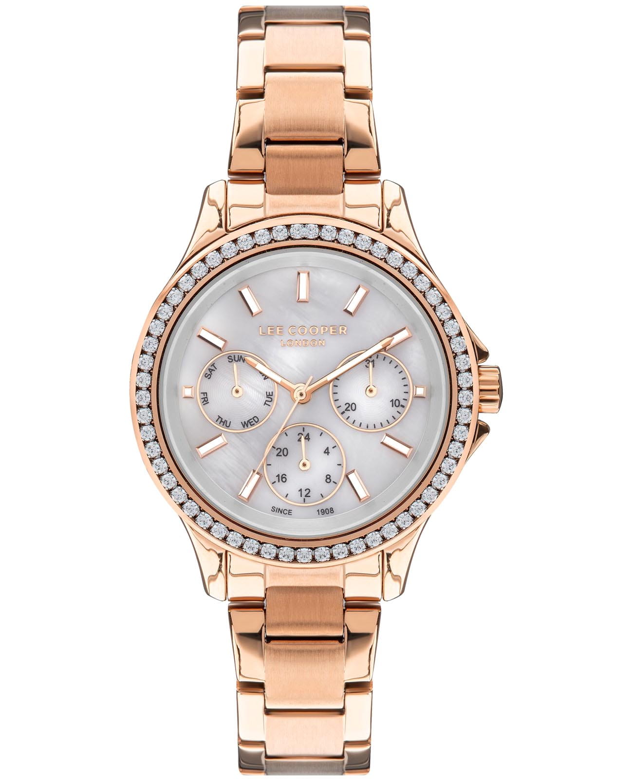 Женские часы Lee Cooper LC07512.420 — это стильное сочетание элегантности и современного дизайна. Круглый корпус диаметром 36 мм выполнен из суперметалла с IP-покрытиемIP-покрытиеМетод ионного напыления. Демонстрирует повышенную устойчивость к истиранию, окислению и химическим веществам. Под воздействием высокого давления и температуры около 1500°C молекулы металла надёжно соединяются с частицами корпуса часов. цвета розового золота, а неподвижный безельБезельВнешний ободок, закрепляющий стекло. В спортивных часах так называется поворотное кольцо с делениями на циферблате, выполняет роль таймера – замеряет отрезки времени на шкале. Неподвижный безель – элемент декора. Однонаправленно вращающийся безель на дайверских часах позволяет фиксировать моменты погружения и выныривания на поверхность. украшен цирконами, придающими модели особый блеск. Перламутровый циферблат защищен минеральным стекломМинеральное стеклоМинеральное стекло представляет собой искусственно выращенный минерал кварца. Такое стекло отличается особой устойчивостью к повреждениям и царапинам. Уступает по некоторым качествам сапфировому стеклу., обеспечивающим устойчивость к царапинам. Метки в виде штрихов. Часы оснащены надежным кварцевым механизмом, а металлический браслет с IP-покрытиемIP-покрытиеМетод ионного напыления. Демонстрирует повышенную устойчивость к истиранию, окислению и химическим веществам. Под воздействием высокого давления и температуры около 1500°C молекулы металла надёжно соединяются с частицами корпуса часов. на раскладной застёжкеРаскладная застёжкаТакой тип застёжки используется только на браслетах из металла. Она никогда не раскрывается полностью, происходит разделение на 2 и более частей. Раскладывающая застёжка снизит вероятность потери часов к минимуму. гарантирует комфортную посадку на запястье. Мультифункциональная модель с индикацией даты, дня недели, с дополнительным 24-х часовым индикатором. Стрелки и метки с люминесцентным покрытиемЛюминесцентное покрытиеПозволяет считывать показания времени в темноте. Производители наносят на стрелки, часовые индексы, безель или поверхность циферблата светонакопительный состав, дающий холодное свечение. позволяют легко считывать время даже в условиях недостаточного освещения. Водозащита 30 метров защищает модель от случайных брызг и дождя. Lee Cooper — отличный выбор для тех, кто ценит утонченность и качество.