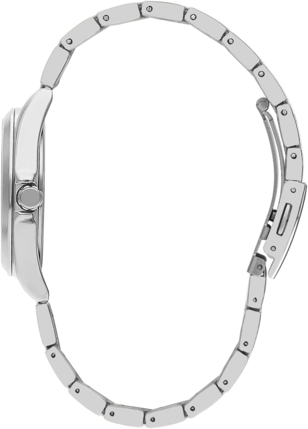 Женские часы Lee Cooper LC07685.530 — это стильное сочетание элегантности и современного дизайна. Круглый корпус диаметром 36 мм выполнен из суперметалла, придающий модели особый блеск. Серебристый циферблат с золотыми индексами защищен минеральным стекломМинеральное стеклоМинеральное стекло представляет собой искусственно выращенный минерал кварца. Такое стекло отличается особой устойчивостью к повреждениям и царапинам. Уступает по некоторым качествам сапфировому стеклу., обеспечивающим устойчивость к царапинам. Часы оснащены надежным кварцевым механизмом, а стальной браслет с частичным IP-покрытиемIP-покрытиеМетод ионного напыления. Демонстрирует повышенную устойчивость к истиранию, окислению и химическим веществам. Под воздействием высокого давления и температуры около 1500°C молекулы металла надёжно соединяются с частицами корпуса часов. на раскладной застёжкеРаскладная застёжкаТакой тип застёжки используется только на браслетах из металла. Она никогда не раскрывается полностью, происходит разделение на 2 и более частей. Раскладывающая застёжка снизит вероятность потери часов к минимуму. гарантирует комфортную посадку на запястье. Мультифункциональная модель с индикацией даты, дня недели, с дополнительным 24-х часовым индикатором. Водозащита 30 метров защищает модель от случайных брызг и дождя. Lee Cooper — это идеальный выбор для тех, кто ценит классический стиль, точность механизма и качество материалов в одном аксессуаре.