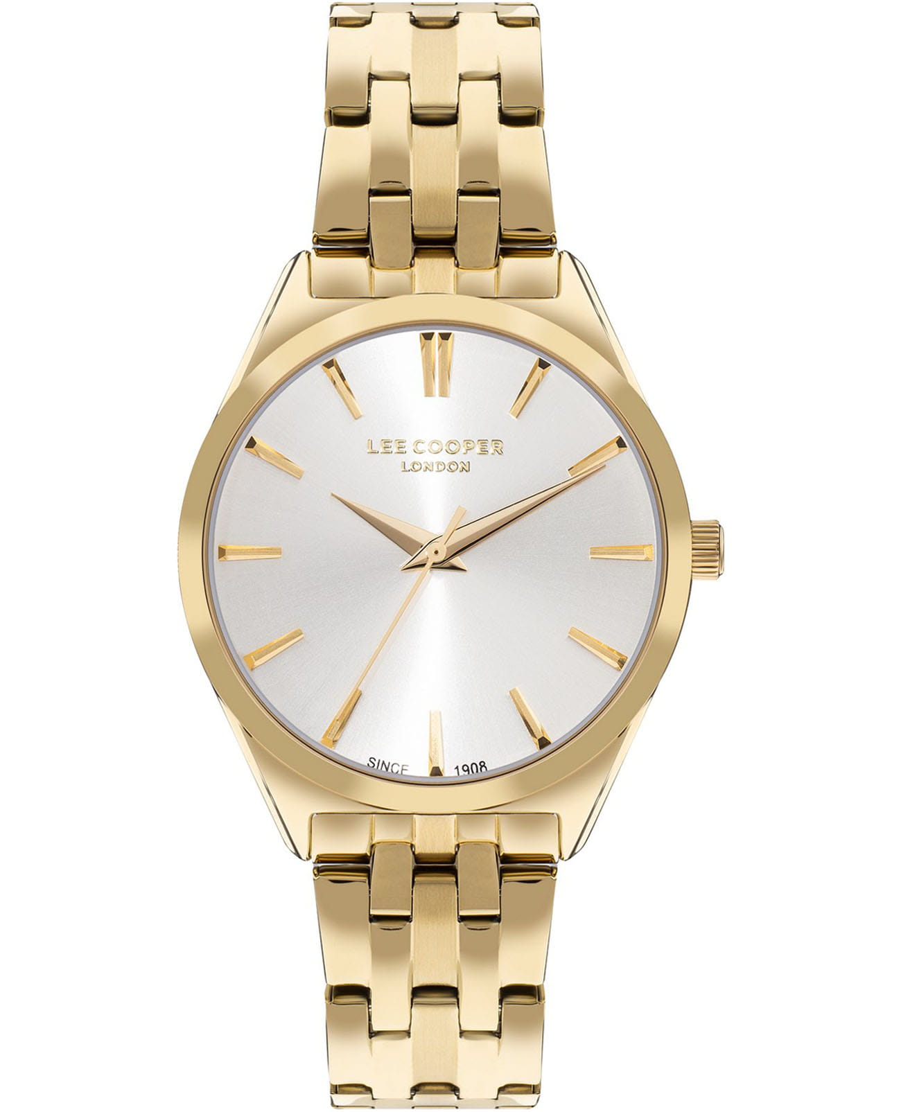 Женские часы Lee Cooper LC07833.130 — это стильное сочетание элегантности и современного дизайна. Изысканный круглый корпус диаметром 34 мм выполнен из суперметалла с IP-покрытиемIP-покрытиеМетод ионного напыления. Демонстрирует повышенную устойчивость к истиранию, окислению и химическим веществам. Под воздействием высокого давления и температуры около 1500°C молекулы металла надёжно соединяются с частицами корпуса часов. золотого цвета, что придает модели особый блеск. Серебристый циферблат защищен минеральным стекломМинеральное стеклоМинеральное стекло представляет собой искусственно выращенный минерал кварца. Такое стекло отличается особой устойчивостью к повреждениям и царапинам. Уступает по некоторым качествам сапфировому стеклу., обеспечивающим устойчивость к царапинам. Метки в виде лаконичных штрихов. Часы оснащены надежным кварцевым механизмом, а изящный стальной браслет с IP-покрытиемIP-покрытиеМетод ионного напыления. Демонстрирует повышенную устойчивость к истиранию, окислению и химическим веществам. Под воздействием высокого давления и температуры около 1500°C молекулы металла надёжно соединяются с частицами корпуса часов. на раскладной застёжкеРаскладная застёжкаТакой тип застёжки используется только на браслетах из металла. Она никогда не раскрывается полностью, происходит разделение на 2 и более частей. Раскладывающая застёжка снизит вероятность потери часов к минимуму. гарантирует комфортную посадку на запястье. Водозащита 30 метров защищает модель от случайных брызг и дождя. Lee Cooper — отличный выбор для тех, кто ценит утонченность и качество.