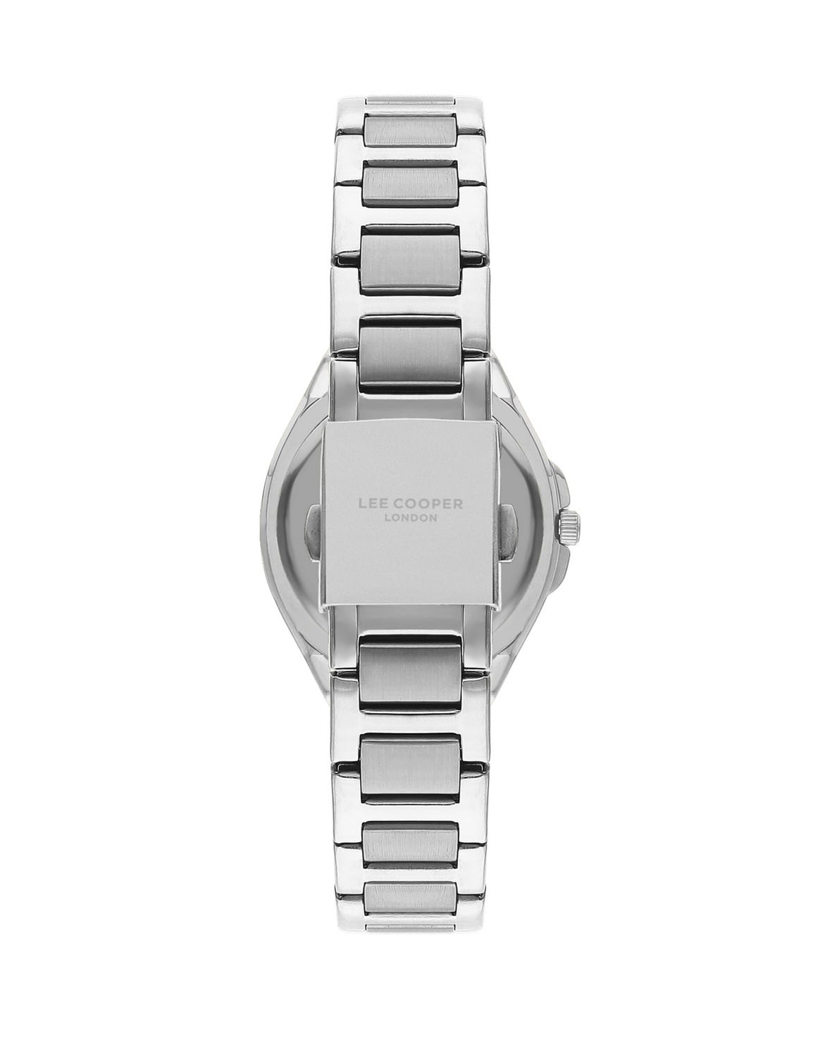 Женские наручные часы Lee Cooper LC07844.350 оснащены точным кварцевым механизмом, обеспечивающим высокую надежность и точность хода. Корпус часов изготовлен из суперметалла, что гарантирует долговечность и устойчивость к повреждениям. Три субдисплея отображают дату, день недели и 24-часовой формат времени, что добавляет функциональности и практичности. Для защиты циферблата используется минеральное стеклоМинеральное стеклоМинеральное стекло представляет собой искусственно выращенный минерал кварца. Такое стекло отличается особой устойчивостью к повреждениям и царапинам. Уступает по некоторым качествам сапфировому стеклу., устойчивое к царапинам и механическим повреждениям. Метки покрыты люминесцентным покрытиемЛюминесцентное покрытиеПозволяет считывать показания времени в темноте. Производители наносят на стрелки, часовые индексы, безель или поверхность циферблата светонакопительный состав, дающий холодное свечение., обеспечивающим отличную читаемость в темноте. Интегрированный браслет изготовлен из нержавеющей стали, которая славится своей долговечностью и возможностью полировки. Браслет гармонично дополняет дизайн часов и обеспечивает комфортное ношение в течение дня благодаря раскладной застёжкеРаскладная застёжкаТакой тип застёжки используется только на браслетах из металла. Она никогда не раскрывается полностью, происходит разделение на 2 и более частей. Раскладывающая застёжка снизит вероятность потери часов к минимуму.. Эти часы сочетают в себе стиль и функциональность, что делает их универсальным аксессуаром, подходящим к любому образу. Модель станет прекрасным подарком. Часы обладают водонепроницаемостью до 50 метров (5 АТМ), что позволяет использовать их в повседневной жизни, включая контакт с водой при мытье рук или дожде.
