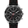 Мужские часы Lee Cooper LC07848.351 выполнены в классическом стиле и сочетают строгий дизайн с надёжным механизмом. Модель оснащена кварцевым механизмом, обеспечивающим точность хода и минимальное обслуживание. Корпус имеет размер 45 мм, изготовлен из суперметалла с безелемБезельВнешний ободок, закрепляющий стекло. В спортивных часах так называется поворотное кольцо с делениями на циферблате, выполняет роль таймера – замеряет отрезки времени на шкале. Неподвижный безель – элемент декора. Однонаправленно вращающийся безель на дайверских часах позволяет фиксировать моменты погружения и выныривания на поверхность. с IP-покрытиемIP-покрытиеМетод ионного напыления. Демонстрирует повышенную устойчивость к истиранию, окислению и химическим веществам. Под воздействием высокого давления и температуры около 1500°C молекулы металла надёжно соединяются с частицами корпуса часов.. Циферблат черного цвета дополнен индексами для чёткого отсчёта времени, а также функциями отображения даты, дня недели, 24-часового индикатора и второго часового поясаВторой часовой поясФункция, позволяющая отображать время двух часовых поясов одновременно.. Защиту циферблата обеспечивает минеральное стеклоМинеральное стеклоМинеральное стекло представляет собой искусственно выращенный минерал кварца. Такое стекло отличается особой устойчивостью к повреждениям и царапинам. Уступает по некоторым качествам сапфировому стеклу., устойчивое к мелким механическим повреждениям. Циферблат украшен стрелками и метками с люминесцентным покрытиемЛюминесцентное покрытиеПозволяет считывать показания времени в темноте. Производители наносят на стрелки, часовые индексы, безель или поверхность циферблата светонакопительный состав, дающий холодное свечение., гармонично дополняющим общий дизайн модели. Ремень из каучука оснащен стандартной застежкой, обеспечивающим комфортное и безопасное ношение. Водозащита 5 АТМ позволяет использовать часы в повседневных условиях без риска повреждения от случайных брызг воды. Это сочетание классического дизайна, прочности материалов и качества исполнения для уверенных в себе мужчин.