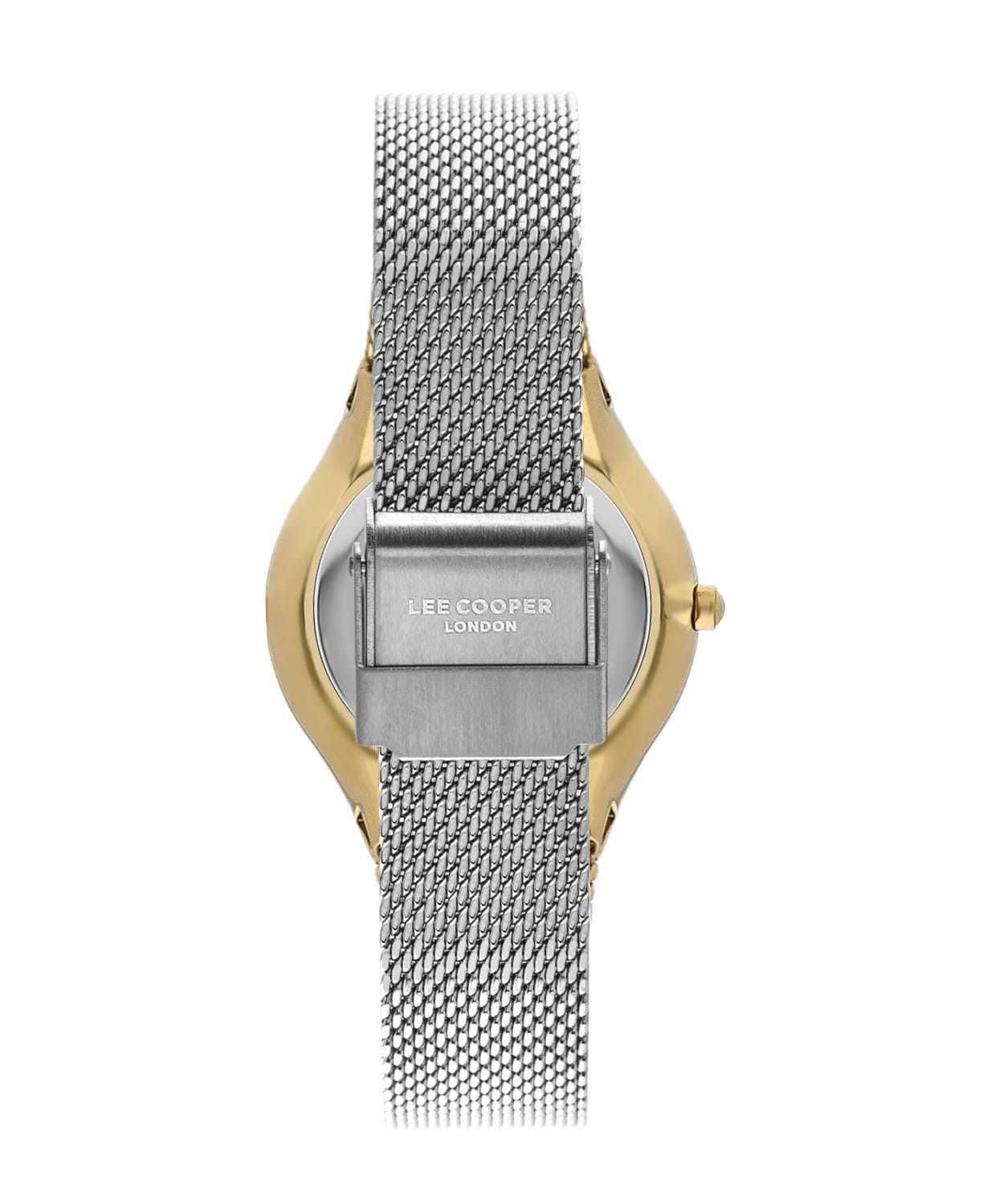 Женские часы Lee Cooper LC07862.230 — это стильное сочетание элегантности и современного дизайна. Изящный корпус диаметром 32 мм выполнен из суперметалла с IP-покрытиемIP-покрытиеМетод ионного напыления. Демонстрирует повышенную устойчивость к истиранию, окислению и химическим веществам. Под воздействием высокого давления и температуры около 1500°C молекулы металла надёжно соединяются с частицами корпуса часов. золотого цвета. Серый циферблат инкрустирован цирконами, что придает модели особый блеск и защищен минеральным стекломМинеральное стеклоМинеральное стекло представляет собой искусственно выращенный минерал кварца. Такое стекло отличается особой устойчивостью к повреждениям и царапинам. Уступает по некоторым качествам сапфировому стеклу., обеспечивающим устойчивость к царапинам. Центральные часовая, минутная стрелки. Часы оснащены надежным кварцевым механизмом. Стальной браслет с застежкой, выполненной в виде раскладного замкаРаскладной замокДанный вариант застежки используется только на часах с металлическим браслетом. Отличительная особенность такого крепления в том, что длина браслета становится универсальной и вы можете самостоятельно отрегулировать нужный вам размер – застежка просто двигается по браслету часов., гарантирующего комфортное и безопасное ношение. Водозащита 30 метров защищает модель от случайных брызг и дождя. Lee Cooper — отличный выбор для тех, кто ценит утонченность и качество.