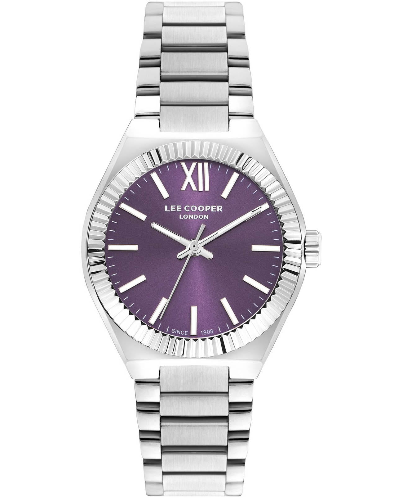 Женские часы Lee Cooper LC07970.320 с изящным корпусом 33 мм, выполненным из суперметалла, сочетают элегантность и надежность. Фиолетовый циферблат придаёт модели утончённый стиль, а минеральное стеклоМинеральное стеклоМинеральное стекло представляет собой искусственно выращенный минерал кварца. Такое стекло отличается особой устойчивостью к повреждениям и царапинам. Уступает по некоторым качествам сапфировому стеклу. защищает его от царапин и повреждений. Точный кварцевый механизм гарантирует стабильную работу и точность хода. Водозащита 30 м защищает от случайных брызг. Стальной браслет с раскладной застёжкойРаскладная застёжкаТакой тип застёжки используется только на браслетах из металла. Она никогда не раскрывается полностью, происходит разделение на 2 и более частей. Раскладывающая застёжка снизит вероятность потери часов к минимуму. обеспечивает комфортное ношение и надёжную фиксацию на запястье. Стрелки и метки покрыты люминесцентным покрытиемЛюминесцентное покрытиеПозволяет считывать показания времени в темноте. Производители наносят на стрелки, часовые индексы, безель или поверхность циферблата светонакопительный состав, дающий холодное свечение., обеспечивающим отличную читаемость в темноте.