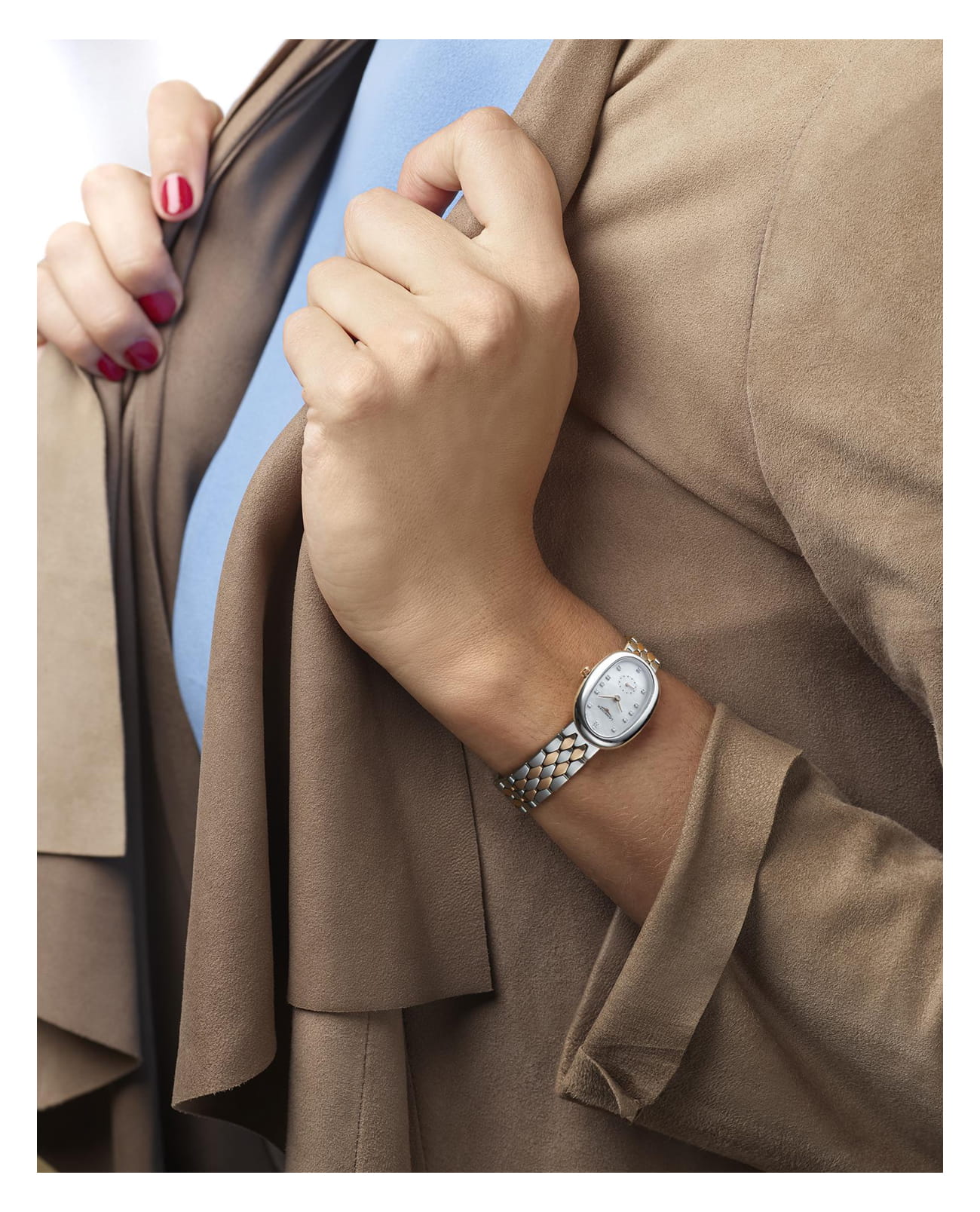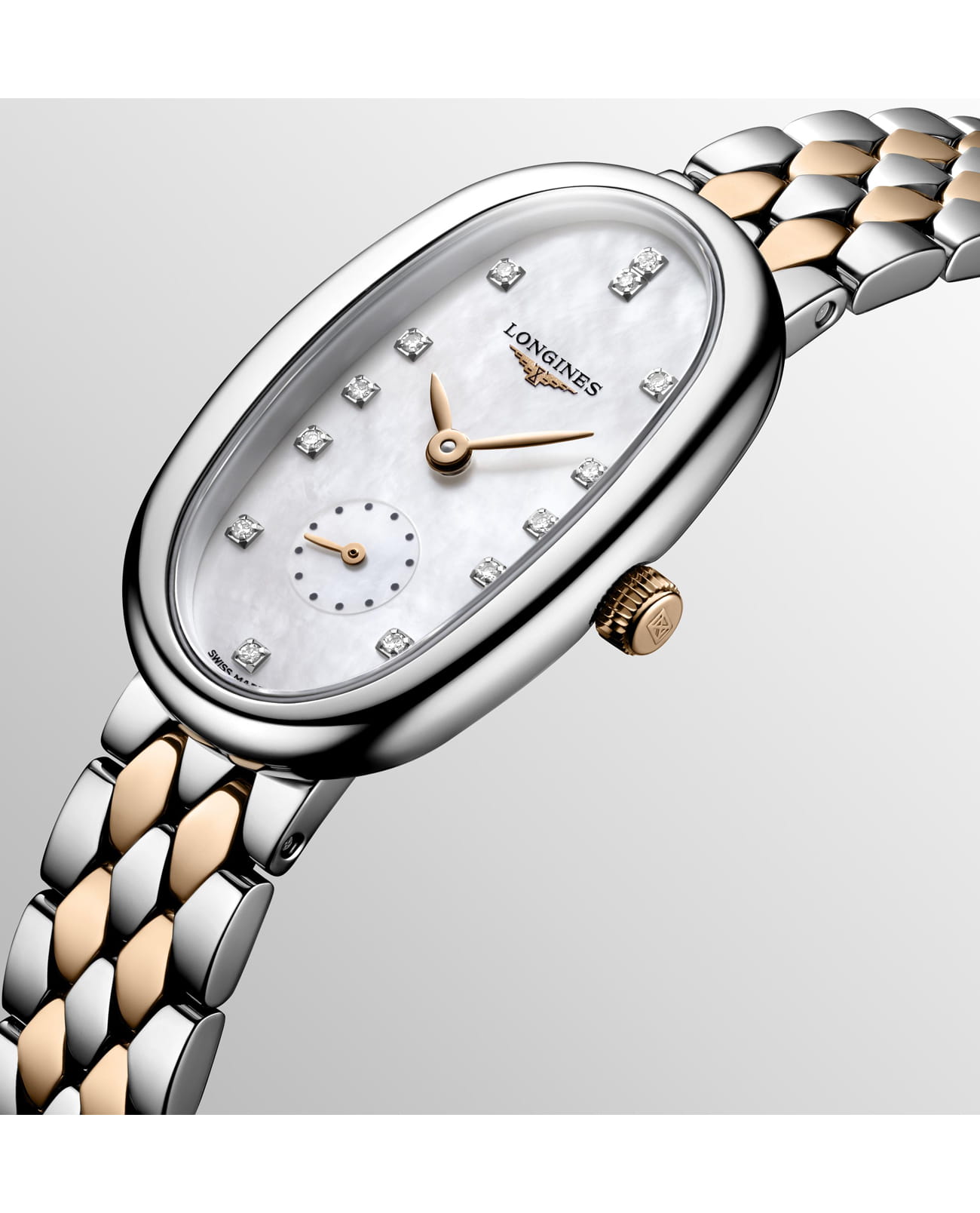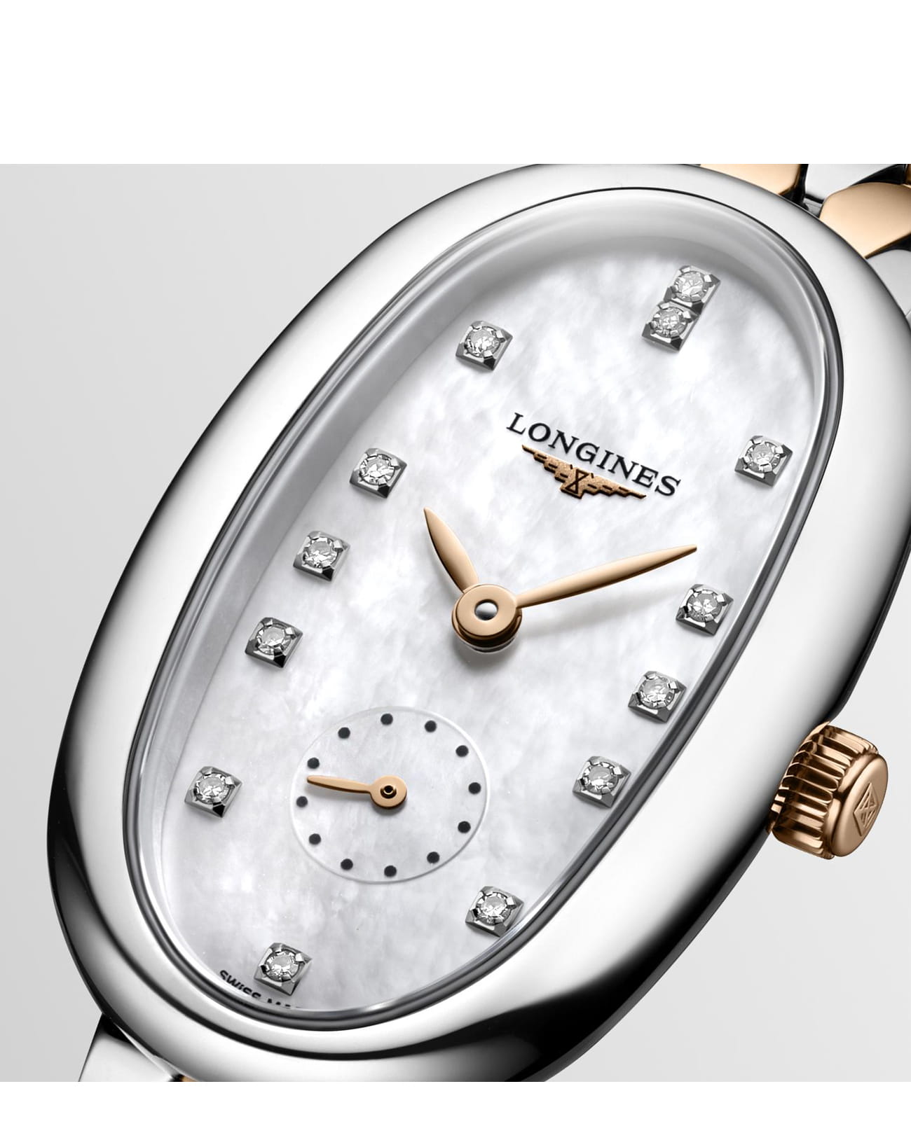 Изящная модель с перламутровым циферблатом инкрустирована 13 бриллиантами в 0,037 карата. Швейцарский кварцевый калибр L176 обеспечивает высокую точность хода. Сапфировое стекло имеет многослойную антибликовую обработкуАнтибликовое покрытиеСлой оксида металла в 0,13-0,3 микрон, благодаря которому стекло часов не бликует и не отражает свет. Антибликовое покрытие уменьшает отражение света в 10 раз, обеспечивая отличную читаемость показателей циферблата.. Наручные часы оснащены календарём, индикатором EOLEOLПредставляет собой систему, уведомляющую владельца часов о необходимости замены элемента питания. За 2 недели до полного разряда батарейки секундная стрелка перестаёт ходить чётко и начинает перепрыгивать на 3-4 деления..