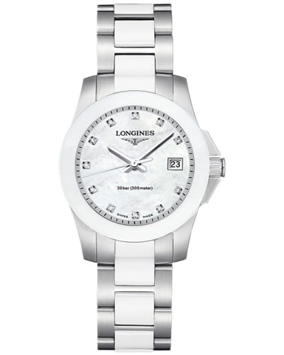 Женские швейцарские механические часы для дайвинга Longines Conquest L3.257.4.87.7, механический механизм (автоматический калибр) с высокой точностью. Сапфировое стекло устойчивое к появлению царапин, обладающее высокой прозрачностью. Класс водозащиты: 300 метров, позволит плавать, нырять и заниматься другими водными видами спорта. Корпус часов изготовлен из стали, разноцветного цвета.