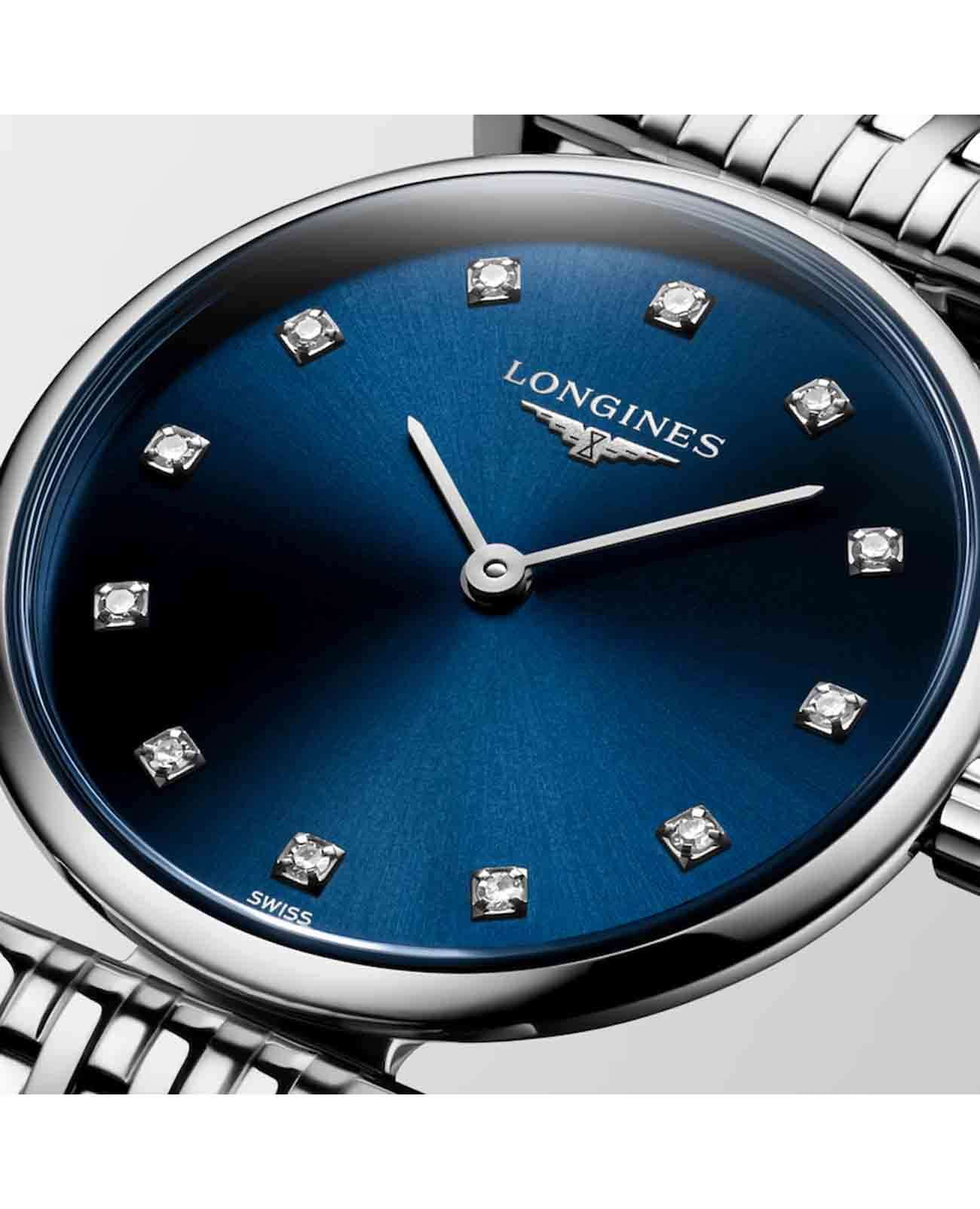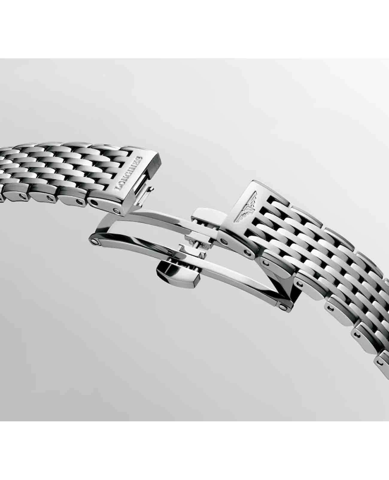 Женские швейцарские часы Longines La Grande Classique L4.209.4.97.6 отличаются изысканным дизайном и высокой точностью работы. Оснащены они сапфировым стекломСапфировое стеклоПрочный и надёжный материал из кристалла сапфира синтетического происхождения, характеризующийся особой твёрдостью и устойчивостью к царапинам и повреждениям., которое прекрасно противостоит царапинам и обеспечивает идеальную прозрачность, позволяя чётко видеть циферблат в любых условиях. Корпус часов выполнен из высококачественной стали, что гарантирует их долговечность и надёжность. Циферблат украшен 12 бриллиантами группы Top Wesselton VS-SI, общий вес которых составляет 0.048 карата, что придаёт часам роскоши и утончённости. Класс водозащиты 30 метров защищает часы от случайных брызг или капель дождя. Стальной браслет с застёжкой-бабочкой с кнопкамиЗастёжка "бабочка"Такой вид застёжки дополняется предохранителями, помогающими избежать случайного раскрытия браслета. Обладают изящным исполнением. обеспечивает комфорт и безопасность при ношении, дополняя элегантный образ этих часов.