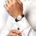 . Окошко даты находится в положении 3 часа. Класс водозащиты: 30 метров, позволит защитить корпус от случайных брызг или капель дождя. Кожаный ремешок на стандартной застежке.
