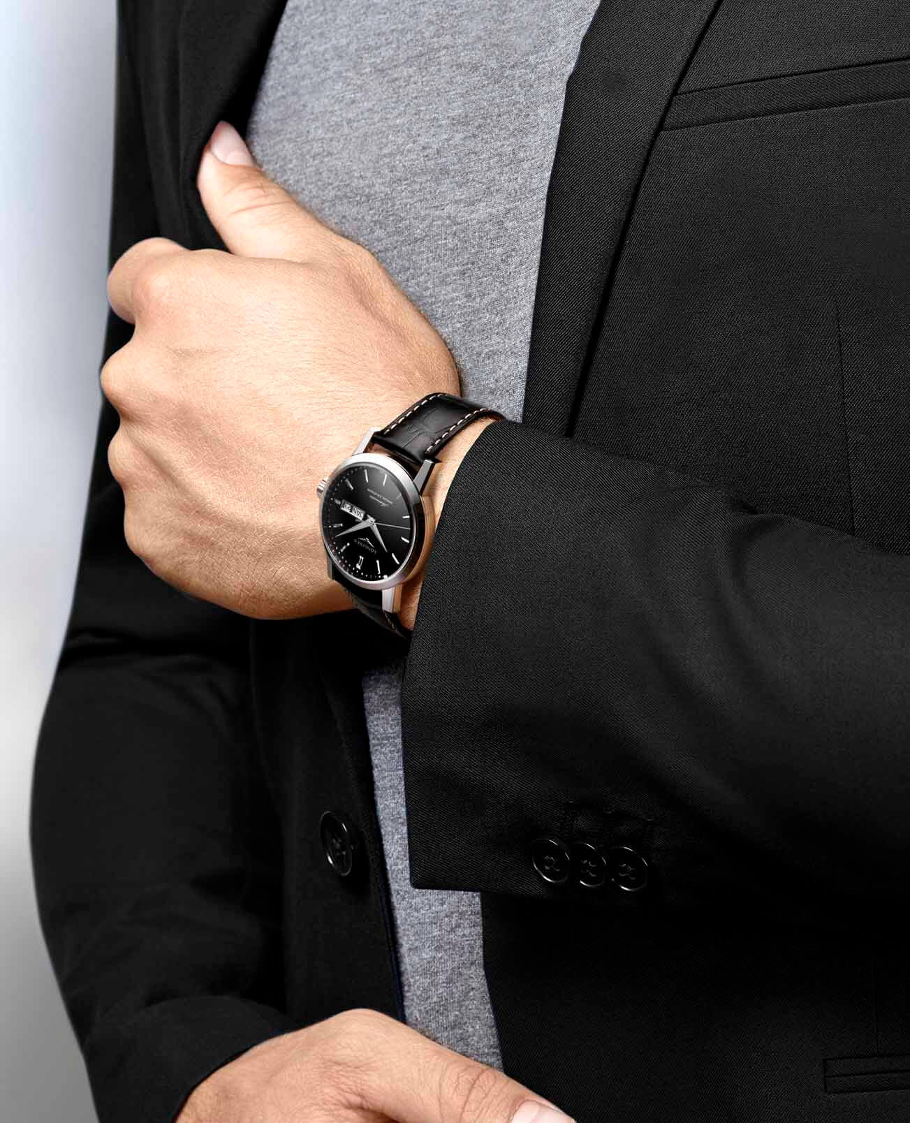 Мужские швейцарские механические часы Longines 1832 L4.827.4.52.0 – завершающий штрих делового образа. Внутри стального корпуса заключён швейцарский автоматический механизм L897. Калибр отличается 64-часовым запасом хода и обеспечивает высокую точность показателей времени. Ремешок из натуральной кожи аллигатора стильно смотрится на запястье. Сапфировое стекло дополнено многослойным антибликовым покрытиемАнтибликовое покрытиеСлой оксида металла в 0,13-0,3 микрон, благодаря которому стекло часов не бликует и не отражает свет. Антибликовое покрытие уменьшает отражение света в 10 раз, обеспечивая отличную читаемость показателей циферблата.. Особенности: люминесцентная подсветкаЛюминесцентное покрытиеПозволяет считывать показания времени в темноте. Производители наносят на стрелки, часовые индексы, безель или поверхность циферблата светонакопительный состав, дающий холодное свечение., годовой календарь.