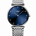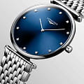 Женские швейцарские часы Longines La Grande Classique l4.866.4.97.6, кварцевый механизм с высокой точностью. Сапфировое стеклоСапфировое стеклоПрочный и надёжный материал из кристалла сапфира синтетического происхождения, характеризующийся особой твёрдостью и устойчивостью к царапинам и повреждениям. устойчивое к появлению царапин, обладающее высокой прозрачностью. Корпус часов изготовлен из стали. Циферблат с 12 бриллиантами группы Top Wesselton VS-SI общим весом 0.081 карата. Класс водозащиты: 30 метров, позволит защитить корпус от случайных брызг или капель дождя. Стальной браслет на застёжке-бабочке с кнопкамиЗастёжка "бабочка"Такой вид застёжки дополняется предохранителями, помогающими избежать случайного раскрытия браслета. Обладают изящным исполнением. .