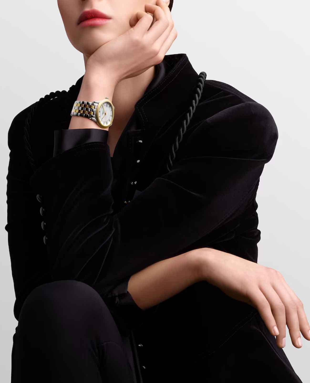 Сапфировое стеклоСапфировое стеклоПрочный и надёжный материал из кристалла сапфира синтетического происхождения, характеризующийся особой твёрдостью и устойчивостью к царапинам и повреждениям., обладающее непревзойденной устойчивостью к царапинам и антибликовым покрытиемАнтибликовое покрытиеСлой оксида металла в 0,13-0,3 микрон, благодаря которому стекло часов не бликует и не отражает свет. Антибликовое покрытие уменьшает отражение света в 10 раз, обеспечивая отличную читаемость показателей циферблата., защищает циферблат, позволяя ему сиять во всей своей красе. Стальной браслет с частичным PVD-покрытиемPVDУльтратонкое покрытие наносится в технике вакуумного напыления, сочетает в себе нитрид титана особой прочности со слоем золота или оксида хрома. Несёт в себе декоративную или защитную функцию. на застёжке «бабочка» с кнопкамиЗастёжка "бабочка"Такой вид застёжки дополняется предохранителями, помогающими избежать случайного раскрытия браслета. Обладают изящным исполнением. . Эти часы, произведенные и собранные в самом сердце Швейцарии, являются воплощением высочайшего мастерства и безупречного качества, которые делают их идеальным выбором для тех, кто ценит роскошь и надежность.