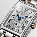 Женские швейцарские часы Longines DolceVita L5.255.5.79.7, кварцевый механизм с высокой точностью. Сапфировое стеклоСапфировое стеклоПрочный и надёжный материал из кристалла сапфира синтетического происхождения, характеризующийся особой твёрдостью и устойчивостью к царапинам и повреждениям. устойчивое к появлению царапин, обладающее высокой прозрачностью. Корпус c 46 бриллиантами Top Wesselton IF-VVS общим весом 0,386 карата. Класс водозащиты: 30 метров, позволит защитить корпус от случайных брызг или капель дождя. Браслет из нержавеющей стали и 18-каратного золота18-каратное золотоОбозначение по каратной системе пробирования, оно показывает, сколько драгоценного металла содержится в изделии. 18 карат - в составе 75% чистого золота, соответствует 750 пробе.