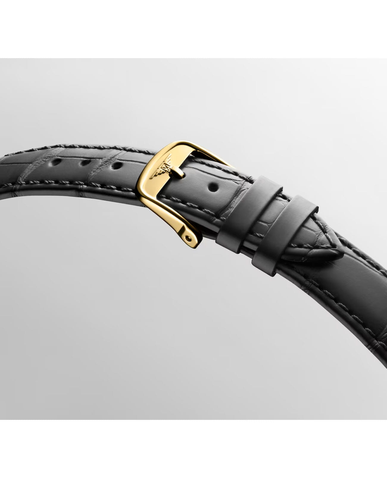 Женские швейцарские часы Longines DolceVita L5.512.6.75.2, кварцевый механизм с высокой точностью. Сапфировое стеклоСапфировое стеклоПрочный и надёжный материал из кристалла сапфира синтетического происхождения, характеризующийся особой твёрдостью и устойчивостью к царапинам и повреждениям. устойчивое к появлению царапин, обладающее высокой прозрачностью. Корпус часов изготовлен из 18-каратного золота18-каратное золотоОбозначение по каратной системе пробирования, оно показывает, сколько драгоценного металла содержится в изделии. 18 карат - в составе 75% чистого золота, соответствует 750 пробе.