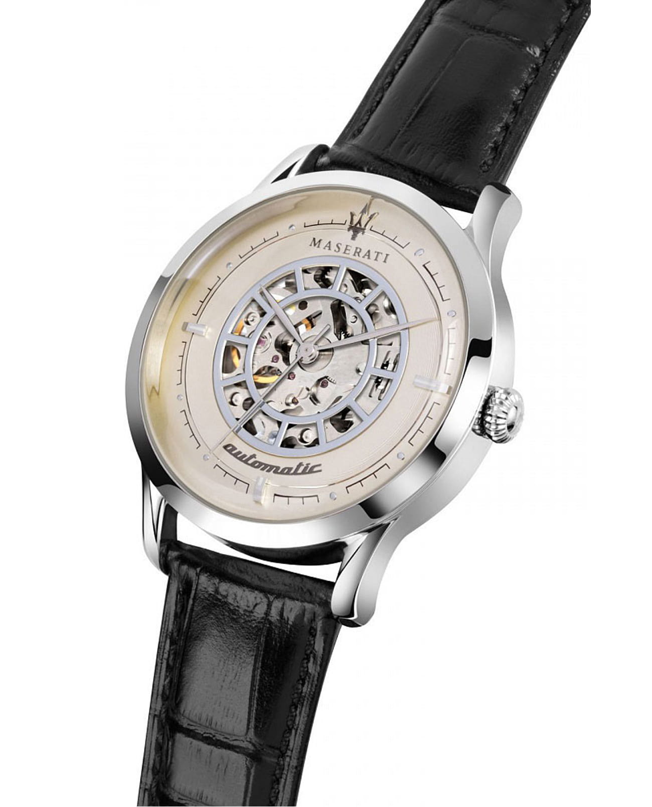 Мужские механические часы скелетоны Maserati R8821133006, механический механизм (автоматический калибр) с высокой точностью. Класс водозащиты: 100 метров, позволит плавать, нырять и заниматься другими водными видами спорта. Корпус часов изготовлен из стали, цвета.