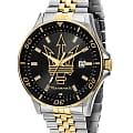 Модель Maserati Sfida R8853140009 — воплощение стиля и функциональности для современных мужчин, ценящих качество и элегантность. Корпус диаметром 44 мм выполнен из нержавеющей стали, обеспечивая прочность и долговечность. Минеральное стеклоМинеральное стеклоМинеральное стекло представляет собой искусственно выращенный минерал кварца. Такое стекло отличается особой устойчивостью к повреждениям и царапинам. Уступает по некоторым качествам сапфировому стеклу. надежно защищает синий циферблат с изящными рисками, придавая часам утонченный вид. Благодаря водостойкости до 100 метров (10 АТМ), эти часы станут вашим надежным спутником в любых условиях, будь то деловая встреча или активный отдых. Люминесцентное покрытиеЛюминесцентное покрытиеПозволяет считывать показания времени в темноте. Производители наносят на стрелки, часовые индексы, безель или поверхность циферблата светонакопительный состав, дающий холодное свечение. на стрелках и метках обеспечивает отличную видимость в темноте. Завершающий штрих — стальной браслет на застёжке-бабочке с кнопкамиЗастёжка "бабочка"Такой вид застёжки дополняется предохранителями, помогающими избежать случайного раскрытия браслета. Обладают изящным исполнением. , который подчеркивает общий стиль, обеспечивая комфорт и надежность в носке. Вращающийся стальной безельБезельВнешний ободок, закрепляющий стекло. В спортивных часах так называется поворотное кольцо с делениями на циферблате, выполняет роль таймера – замеряет отрезки времени на шкале. Неподвижный безель – элемент декора. Однонаправленно вращающийся безель на дайверских часах позволяет фиксировать моменты погружения и выныривания на поверхность. с PVD-покрытиемPVDУльтратонкое покрытие наносится в технике вакуумного напыления, сочетает в себе нитрид титана особой прочности со слоем золота или оксида хрома. Несёт в себе декоративную или защитную функцию.. Циферблат выполнен по технологии Sunray (солнечные лучи) и украшен фирменным логотипом «Maserati». Метки в виде штрихов. Окошко даты с увеличительным стеклом находится в положении 3 часа.