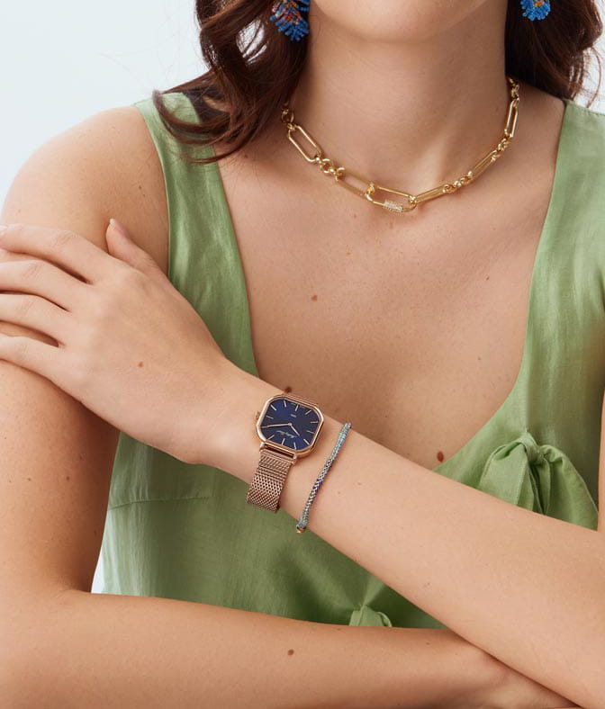 Женские кварцевые часы Mathey-Tissot Monsoon D7917PBU — это стильное сочетание элегантности и современного дизайна. Изящный корпус выполнен из нержавеющей стали с PVD-покрытиемPVDУльтратонкое покрытие наносится в технике вакуумного напыления, сочетает в себе нитрид титана особой прочности со слоем золота или оксида хрома. Несёт в себе декоративную или защитную функцию., размером 32х32 мм, что придаст образу элегантности и надежности. Изысканный циферблат с метками в виде штрихов придает модели особый блеск. Циферблат выполнен по технологии Sunray (солнечные лучи) и защищен минеральным стекломМинеральное стеклоМинеральное стекло представляет собой искусственно выращенный минерал кварца. Такое стекло отличается особой устойчивостью к повреждениям и царапинам. Уступает по некоторым качествам сапфировому стеклу. с сапфировым покрытием, обеспечивает устойчивость к царапинам. Часы оснащены надежным кварцевым механизмом. Стальной браслет с PVD-покрытиемPVDУльтратонкое покрытие наносится в технике вакуумного напыления, сочетает в себе нитрид титана особой прочности со слоем золота или оксида хрома. Несёт в себе декоративную или защитную функцию. миланского плетения на раскладном замкеРаскладная застёжкаТакой тип застёжки используется только на браслетах из металла. Она никогда не раскрывается полностью, происходит разделение на 2 и более частей. Раскладывающая застёжка снизит вероятность потери часов к минимуму., гарантирует комфортное и безопасное ношение. Класс водозащиты: 50 метров позволит защитить корпус от случайных брызг или капель дождя. Mathey-Tissot  — отличный выбор для тех, кто ценит утонченность и качество.