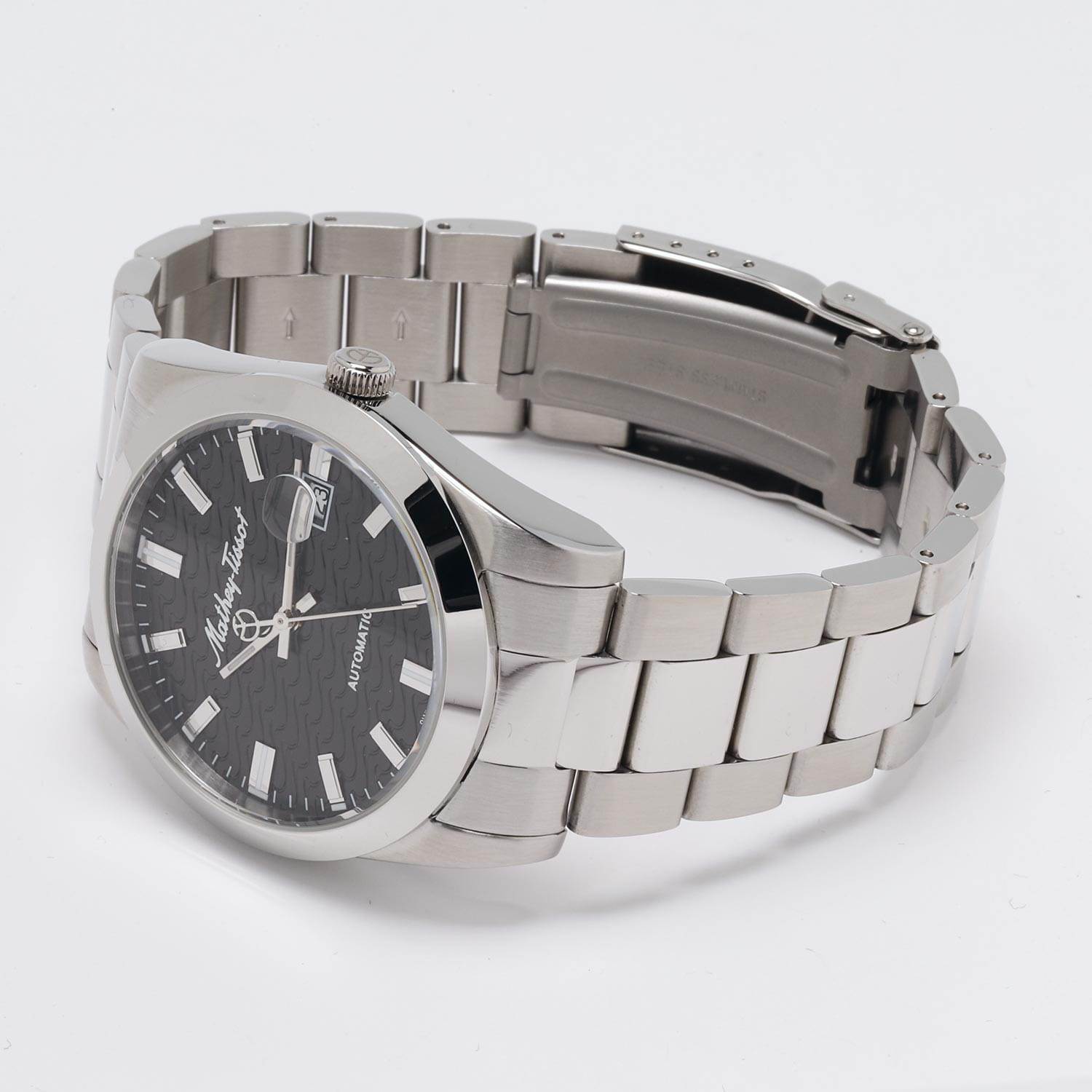 Мужские механические часы с автоподзаводом Mathey-Tissot Mathy H1450ATAN — это стильное сочетание элегантности и современного дизайна. Изящный корпус выполнен из нержавеющей стали, диаметром 42 мм, что придаст образу элегантности и надежности. Изысканный циферблат с метками в виде штрихов придает модели особый блеск. Циферблат защищен минеральным стекломМинеральное стеклоМинеральное стекло представляет собой искусственно выращенный минерал кварца. Такое стекло отличается особой устойчивостью к повреждениям и царапинам. Уступает по некоторым качествам сапфировому стеклу. с сапфировым покрытием, обеспечивает устойчивость к царапинам. Стрелки и метки с люминесцентным покрытиемЛюминесцентное покрытиеПозволяет считывать показания времени в темноте. Производители наносят на стрелки, часовые индексы, безель или поверхность циферблата светонакопительный состав, дающий холодное свечение.. Окошко даты находится в положении 3 часа. Стальной браслет на раскладной застёжке с фиксаторомРаскладная застёжкаТакой тип застёжки используется только на браслетах из металла. Она никогда не раскрывается полностью, происходит разделение на 2 и более частей. Раскладывающая застёжка снизит вероятность потери часов к минимуму., гарантирует комфортное и безопасное ношение. Рифленая заводная головка. Класс водозащиты: 50 метров позволит защитить корпус от случайных брызг или капель дождя. Mathey-Tissot — отличный выбор для тех, кто ценит утонченность и качество.