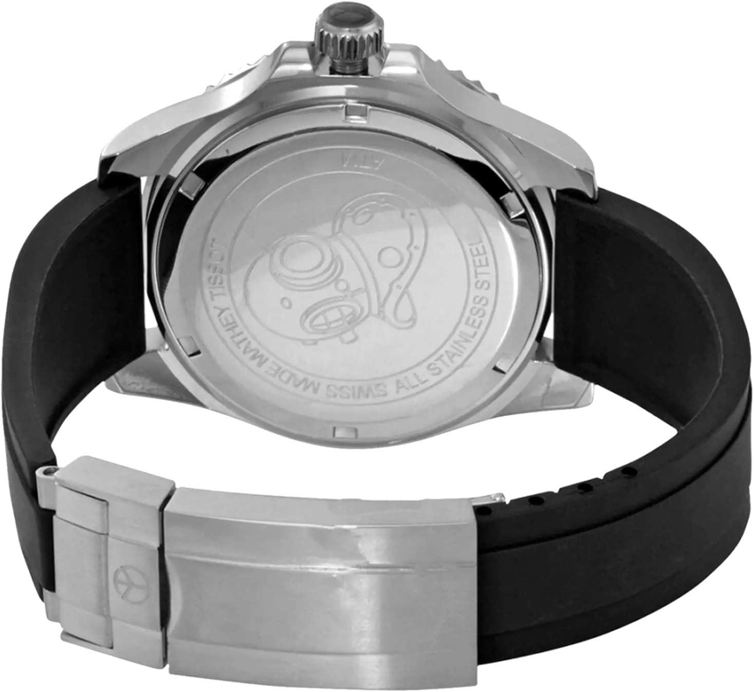 Мужские кварцевые часы Mathey-Tissot Mathy H909AN — это стильное сочетание элегантности и современного дизайна. Изящный корпус выполнен из нержавеющей стали, диаметром 42 мм, что придаст образу элегантности и надежности. Циферблат с метками в виде точек и арабских цифр придает модели особый блеск. Циферблат защищен минеральным стекломМинеральное стеклоМинеральное стекло представляет собой искусственно выращенный минерал кварца. Такое стекло отличается особой устойчивостью к повреждениям и царапинам. Уступает по некоторым качествам сапфировому стеклу. с сапфировым покрытием, обеспечивает устойчивость к царапинам. Стрелки и метки с люминесцентным покрытиемЛюминесцентное покрытиеПозволяет считывать показания времени в темноте. Производители наносят на стрелки, часовые индексы, безель или поверхность циферблата светонакопительный состав, дающий холодное свечение.. Окошко даты находится в положении 3 часа. Вращающийся безельБезельВнешний ободок, закрепляющий стекло. В спортивных часах так называется поворотное кольцо с делениями на циферблате, выполняет роль таймера – замеряет отрезки времени на шкале. Неподвижный безель – элемент декора. Однонаправленно вращающийся безель на дайверских часах позволяет фиксировать моменты погружения и выныривания на поверхность. в одном направлении. Часы оснащены надежным кварцевым механизмом. Силиконовый ремешок с раскладной застёжкойРаскладная застёжкаТакой тип застёжки используется только на браслетах из металла. Она никогда не раскрывается полностью, происходит разделение на 2 и более частей. Раскладывающая застёжка снизит вероятность потери часов к минимуму. гарантирует комфортное и безопасное ношение. Класс водозащиты: 200 метров позволит плавать, нырять и заниматься другими водными видами спорта. Mathey-Tissot — отличный выбор для тех, кто ценит утонченность и качество.
