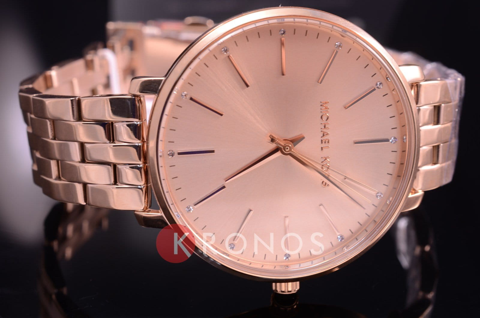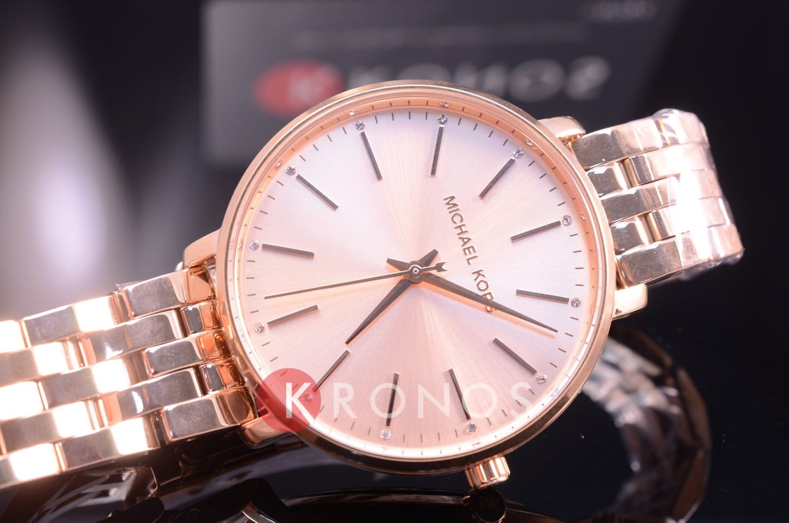 Часы Michael Kors являются атрибутом роскошного образа жизни, гармонично сочетая в себе практичность и невероятный модный дизайн. Несмотря на то, что аксессуар является представителем стиля fashion, дизайнеры не забыли о классических элементах оформления. Это привело к сохранению актуальности на множество сезонов вперёд. Брендовый аксессуар идеально дополнит ваш образ, он может как подчеркнуть ваши индивидуальные черты, так и наделить офисный костюм нотками оригинальности. Наручные часы комплектуются японскими механизмами, отличающиеся надёжностью и высокой точностью хода. Для защиты циферблата используется минеральное стекло, устойчивое к образованию царапин.