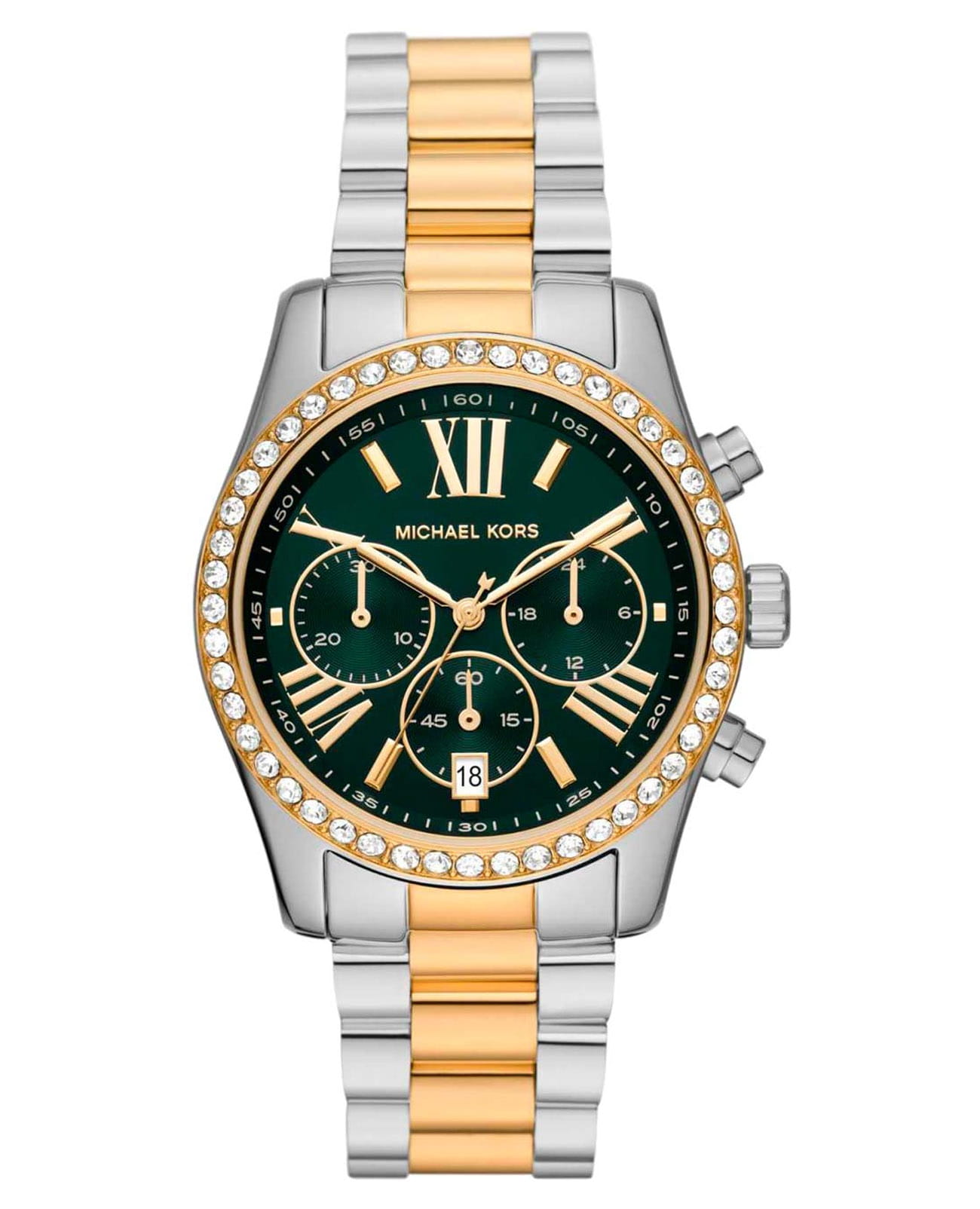 Женские американские часы-хронографХронографФункция позволяет измерять отрезки времени с особой точностью: часы, минуты, секунды. Верным признаком хронографа является наличие на циферблате 3 дополнительных окошек-счётчиков. с секундомеромСекундомерСекундоме́р — прибор, способный измерять интервалы времени с точностью до долей секунды. и с минеральным стекломМинеральное стеклоМинеральное стекло представляет собой искусственно выращенный минерал кварца. Такое стекло отличается особой устойчивостью к повреждениям и царапинам. Уступает по некоторым качествам сапфировому стеклу. Michael Kors Lexington MK7303, кварцевый механизм с высокой точностью. Корпус часов изготовлен из нержавеющей стали. БезельБезельВнешний ободок, закрепляющий стекло. В спортивных часах так называется поворотное кольцо с делениями на циферблате, выполняет роль таймера – замеряет отрезки времени на шкале. Неподвижный безель – элемент декора. Однонаправленно вращающийся безель на дайверских часах позволяет фиксировать моменты погружения и выныривания на поверхность. с PVD-покрытиемPVDУльтратонкое покрытие наносится в технике вакуумного напыления, сочетает в себе нитрид титана особой прочности со слоем золота или оксида хрома. Несёт в себе декоративную или защитную функцию. украшен кристаллами. Три дополнительных индикатора. Метки в виде штрихов и римских цифр. Окошко даты находится в положении 6 часов. Класс водозащиты: 100 метров, позволит плавать, нырять и заниматься другими водными видами спорта. Стальной браслет с частичным PVD-покрытиемPVDУльтратонкое покрытие наносится в технике вакуумного напыления, сочетает в себе нитрид титана особой прочности со слоем золота или оксида хрома. Несёт в себе декоративную или защитную функцию. на раскладной застёжкеРаскладная застёжкаТакой тип застёжки используется только на браслетах из металла. Она никогда не раскрывается полностью, происходит разделение на 2 и более частей. Раскладывающая застёжка снизит вероятность потери часов к минимуму..