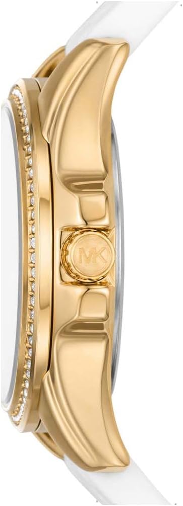 Идеальный аксессуар, который придаст женскому образу завершенность и особый шарм. Женские американские часы Michael Kors Pilot MK7372 имеют кварцевый механизм с высокой точностью. Корпус часов изготовлен из нержавеющей стали с золотистым PVD-покрытиемPVDУльтратонкое покрытие наносится в технике вакуумного напыления, сочетает в себе нитрид титана особой прочности со слоем золота или оксида хрома. Несёт в себе декоративную или защитную функцию., диаметром 36 мм. Циферблат с метками в виде штрихов и арабских цифр защищен минеральным стекломМинеральное стеклоМинеральное стекло представляет собой искусственно выращенный минерал кварца. Такое стекло отличается особой устойчивостью к повреждениям и царапинам. Уступает по некоторым качествам сапфировому стеклу., что обеспечивает надежную защиту от царапин и повреждений. БезельБезельВнешний ободок, закрепляющий стекло. В спортивных часах так называется поворотное кольцо с делениями на циферблате, выполняет роль таймера – замеряет отрезки времени на шкале. Неподвижный безель – элемент декора. Однонаправленно вращающийся безель на дайверских часах позволяет фиксировать моменты погружения и выныривания на поверхность. украшен кристаллами. Стрелки с люминесцентным покрытиемЛюминесцентное покрытиеПозволяет считывать показания времени в темноте. Производители наносят на стрелки, часовые индексы, безель или поверхность циферблата светонакопительный состав, дающий холодное свечение.. Класс водозащиты: 30 метров позволит защитить корпус от случайных брызг или капель дождя. Удобный силиконовый ремешок с классической застежкой обеспечивает надежную фиксацию на запястье и легкость в надевании и снятии. 24-часовой формат времени для удобства планирования. Эти часы станут отличным дополнением к любому наряду, подчеркивая индивидуальность и стиль их обладательницы.