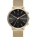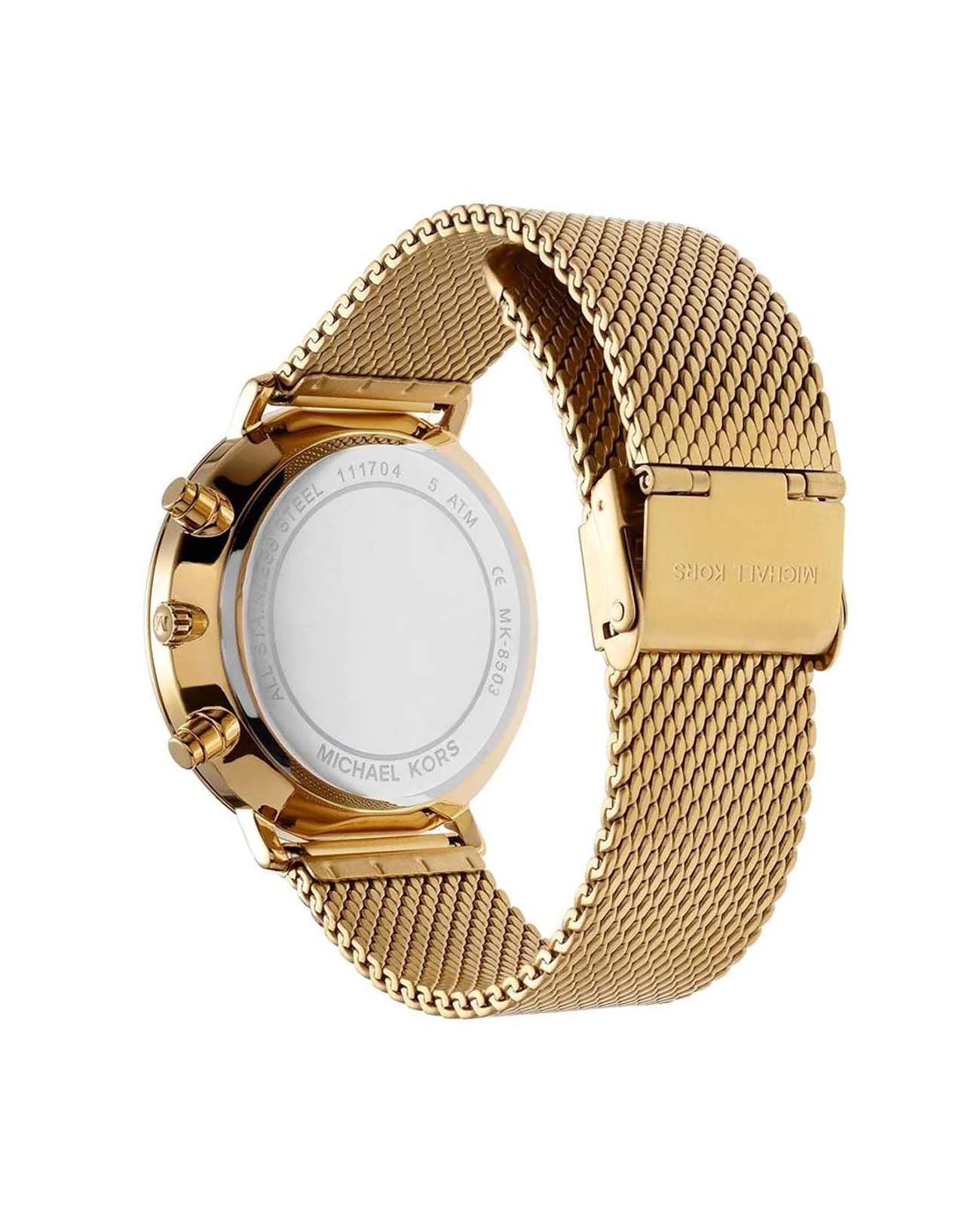Женские американские часы с минеральным стекломМинеральное стеклоМинеральное стекло представляет собой искусственно выращенный минерал кварца. Такое стекло отличается особой устойчивостью к повреждениям и царапинам. Уступает по некоторым качествам сапфировому стеклу. Michael Kors Parker MK8503, кварцевый механизм с высокой точностью. Корпус часов изготовлен из нержавеющей стали с PVD-покрытиемPVDУльтратонкое покрытие наносится в технике вакуумного напыления, сочетает в себе нитрид титана особой прочности со слоем золота или оксида хрома. Несёт в себе декоративную или защитную функцию.. Календарь, 12-ти часовой формат времени и 24-х часовой формат времени. Класс водозащиты: 50 метров, позволит защитить корпус от случайных брызг или капель дождя. Стальной браслет миланского плетения с PVD-покрытиемPVDУльтратонкое покрытие наносится в технике вакуумного напыления, сочетает в себе нитрид титана особой прочности со слоем золота или оксида хрома. Несёт в себе декоративную или защитную функцию. на раскладном замкеРаскладной замокДанный вариант застежки используется только на часах с металлическим браслетом. Отличительная особенность такого крепления в том, что длина браслета становится универсальной и вы можете самостоятельно отрегулировать нужный вам размер – застежка просто двигается по браслету часов..