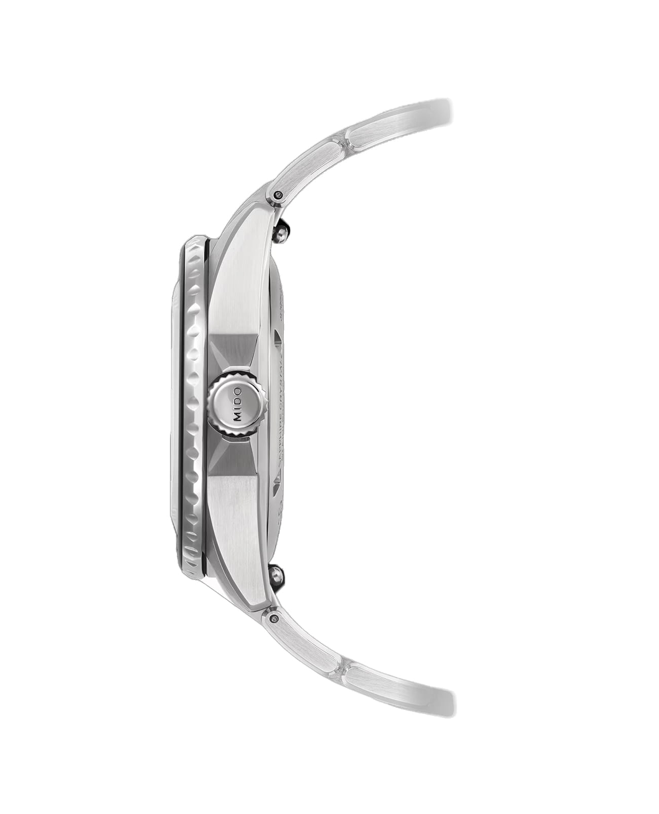 Женские швейцарские механические часы с сапфировым стеклом Mido Ocean Star 36.5 M026.207.11.051.00, механический механизм (автоматический калибр) с высокой точностью. Сапфировое стеклоСапфировое стеклоПрочный и надёжный материал из кристалла сапфира синтетического происхождения, характеризующийся особой твёрдостью и устойчивостью к царапинам и повреждениям. устойчивое к появлению царапин, обладающее высокой прозрачностью. Корпус часов изготовлен из стали. Вращающийся безельБезельВнешний ободок, закрепляющий стекло. В спортивных часах так называется поворотное кольцо с делениями на циферблате, выполняет роль таймера – замеряет отрезки времени на шкале. Неподвижный безель – элемент декора. Однонаправленно вращающийся безель на дайверских часах позволяет фиксировать моменты погружения и выныривания на поверхность. из нержавеющей стали с PVDPVDУльтратонкое покрытие наносится в технике вакуумного напыления, сочетает в себе нитрид титана особой прочности со слоем золота или оксида хрома. Несёт в себе декоративную или защитную функцию. покрытием и керамики с покрытием Superluminova. Циферблат украшают метки с бриллиантами. Стрелки с люминесцентным покрытиемЛюминесцентное покрытиеПозволяет считывать показания времени в темноте. Производители наносят на стрелки, часовые индексы, безель или поверхность циферблата светонакопительный состав, дающий холодное свечение.. Окошко в положении 6 часов. Класс водозащиты: 200 метров, позволит плавать, нырять и заниматься другими водными видами спорта. Стальной браслет на раскладной застёжкеРаскладная застёжкаТакой тип застёжки используется только на браслетах из металла. Она никогда не раскрывается полностью, происходит разделение на 2 и более частей. Раскладывающая застёжка снизит вероятность потери часов к минимуму..