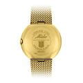 Циферблат с фирменным логотипом Mido 1950-х годов украшен накладными индексами и стрелками с люминесцентным покрытиемЛюминесцентное покрытиеПозволяет считывать показания времени в темноте. Производители наносят на стрелки, часовые индексы, безель или поверхность циферблата светонакопительный состав, дающий холодное свечение., обеспечивающим читаемость даже в условиях слабого освещения. На «3 часах» расположено двойное окошко календаря — день недели и дата. Стальной браслет миланского плетения с PVD-покрытиемPVDУльтратонкое покрытие наносится в технике вакуумного напыления, сочетает в себе нитрид титана особой прочности со слоем золота или оксида хрома. Несёт в себе декоративную или защитную функцию. на раскладном замкеРаскладной замокДанный вариант застежки используется только на часах с металлическим браслетом. Отличительная особенность такого крепления в том, что длина браслета становится универсальной и вы можете самостоятельно отрегулировать нужный вам размер – застежка просто двигается по браслету часов..Модель защищена акриловым стеклом, сохраняющим аутентичный винтажный характер. Прозрачная задняя крышка открывает вид на автоматический механизм с автоподзаводом и 80-часовым запасом хода.