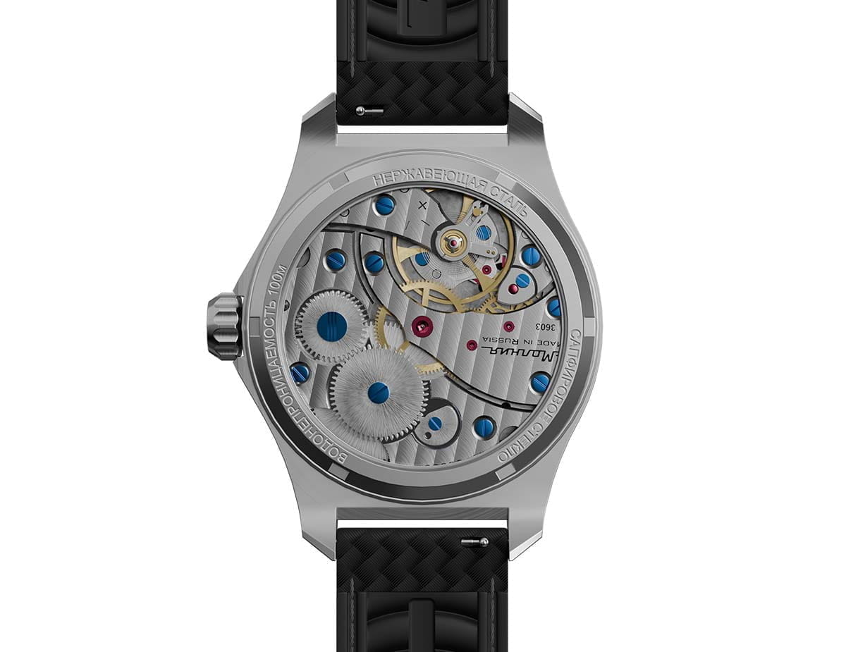 Мужские механические часы с ручным подзаводом — это аксессуар от легендарного бренда «МОЛНИЯ», созданный на Челябинском часовом заводе. Корпус диаметром 42 мм выполнен из нержавеющей стали 316L с зеркальной полировкой. БезельБезельВнешний ободок, закрепляющий стекло. В спортивных часах так называется поворотное кольцо с делениями на циферблате, выполняет роль таймера – замеряет отрезки времени на шкале. Неподвижный безель – элемент декора. Однонаправленно вращающийся безель на дайверских часах позволяет фиксировать моменты погружения и выныривания на поверхность. также выполнен из стали с зеркальной отделкой. Циферблат серебристого цвета оформлен индексами и стрелками. Малая секундная стрелка вынесена на позицию 9 часов. Стрелки и метки с люминесцентным покрытиемЛюминесцентное покрытиеПозволяет считывать показания времени в темноте. Производители наносят на стрелки, часовые индексы, безель или поверхность циферблата светонакопительный состав, дающий холодное свечение. Super-LumiNova, обеспечивающим хорошую читаемость в темноте. Циферблат защищён сапфировым стекломСапфировое стеклоПрочный и надёжный материал из кристалла сапфира синтетического происхождения, характеризующийся особой твёрдостью и устойчивостью к царапинам и повреждениям. с антибликовым покрытиемАнтибликовое покрытиеСлой оксида металла в 0,13-0,3 микрон, благодаря которому стекло часов не бликует и не отражает свет. Антибликовое покрытие уменьшает отражение света в 10 раз, обеспечивая отличную читаемость показателей циферблата.. Механизм — мануфактурный калибр 3603, собранный вручную, с запасом хода до 40 часов. Прозрачная задняя крышка позволяет наблюдать за работой механизма. Часы оснащены силиконовым ремешком чёрного цвета с классической пряжкой, а также системой быстрой замены. Водонепроницаемость 100 м позволяет использовать часы для плавания и повседневного ношения. Идеальный выбор для тех, кто ценит российское качество и традиции.